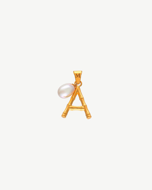 Initial Charm Letter A White Pearl Bamboo Iniciales Bambú