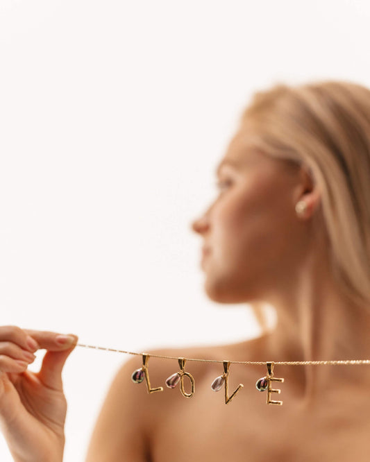 Initial Charm Letter L Pearl Champagne Bamboo Iniciales Bambú