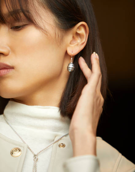 Short Gray Pearl Earrings Nuada