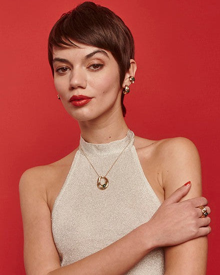 Short Green and Gold Necklace Feme Femme