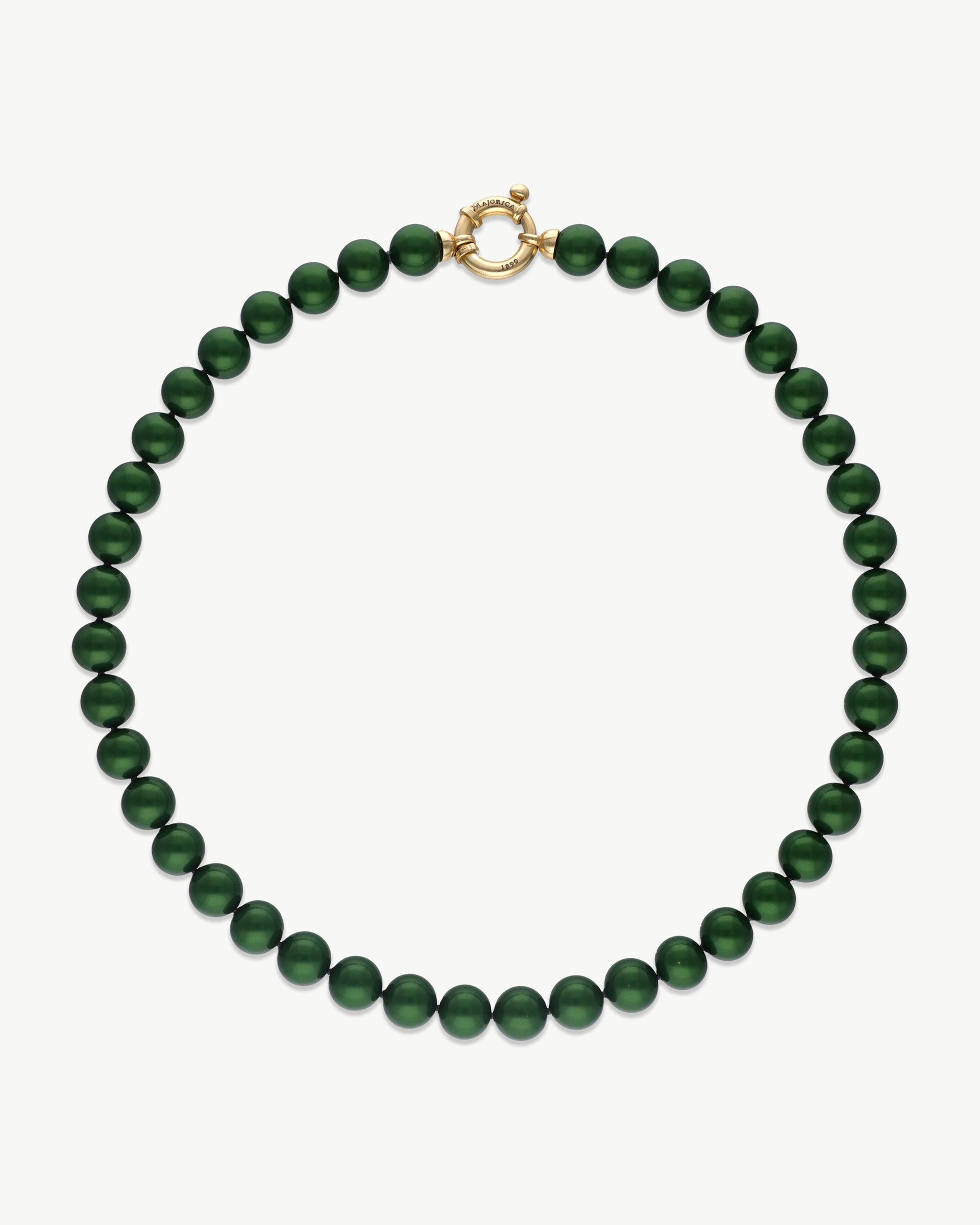 10mm pearl necklace in gold plated silver with green pearls and 45cm long. The timeless collection of single-strand pearl necklaces