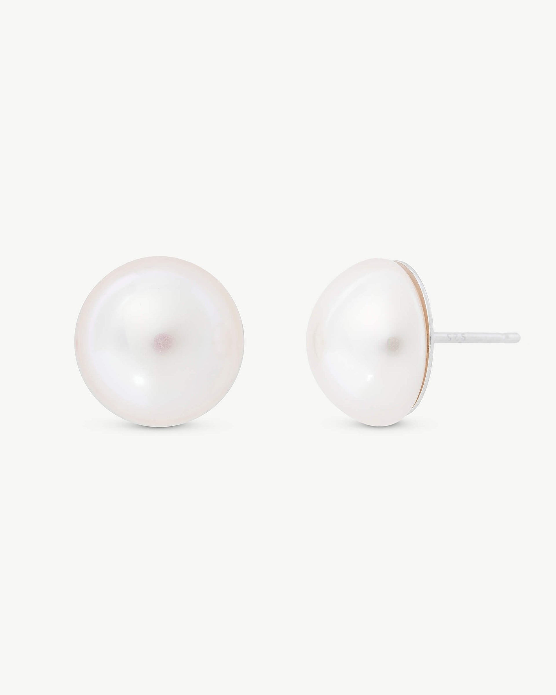 Ball earrings with spike in rhodium-plated silver, 12mm white mab pearls.Ball earrings with spike in rhodium-plated silver, 12mm white mab pearls.Ball earrings with spike in rhodium-plated silver, 12mm white mab pearls.