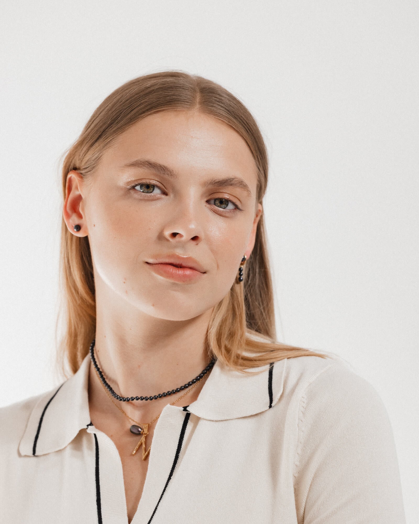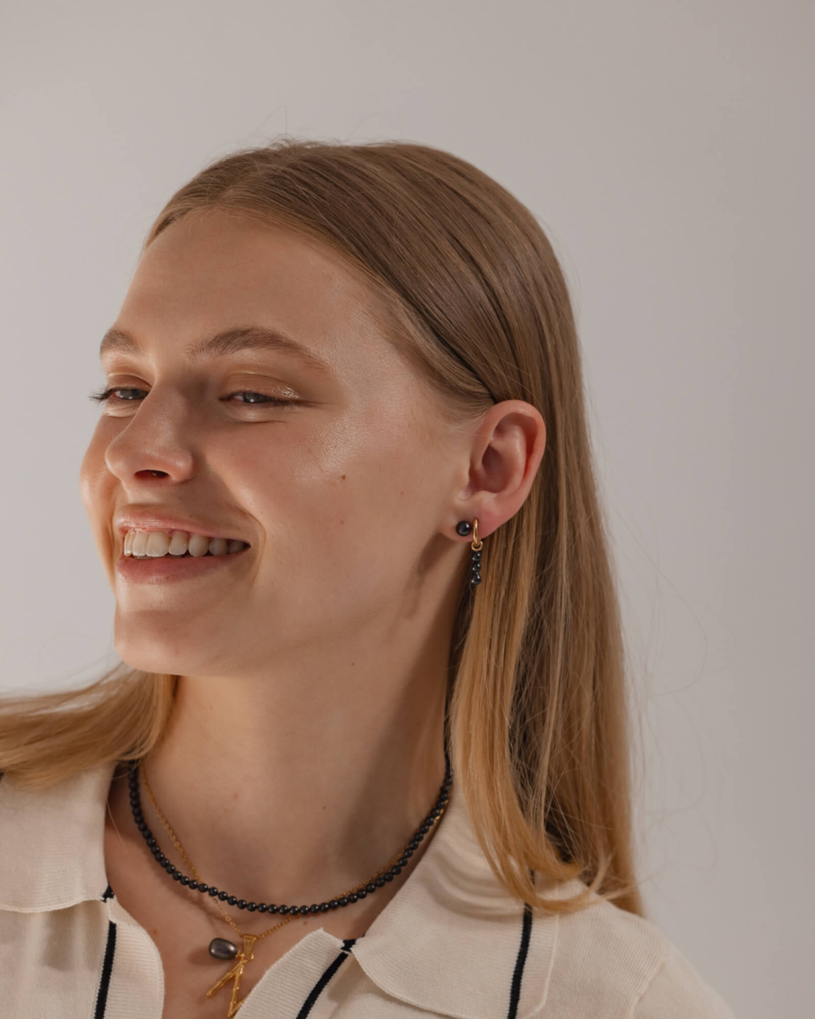 Mini hoop in golden silver with 4mm black pearls. (UNITARY). Interchangeable earrings and pendants in customizable combinationsThe collection offers a versatile chain base for hanging mini hoop or small hoop earrings, with 4 mm pearls in exclusive colors.Mini hoop in golden silver with 4mm black pearls. (UNITARY). Interchangeable earrings and pendants in customizable combinations The collection offers a versatile chain base for hanging mini hoop or small hoop earrings, with 4 mm pearls in exclusive colors.Mini hoop in golden silver with 4mm black pearls. (UNITARY). Interchangeable earrings and pendants in customizable combinations The collection offers a versatile chain base for hanging mini hoop or small hoop earrings, with 4 mm pearls in exclusive colors.