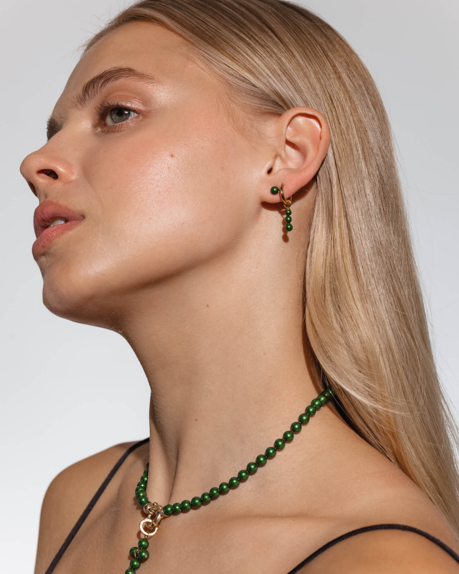 The collection offers a versatile chain base for hanging mini hoop or small hoop earrings, with 4 mm pearls in exclusive colors.