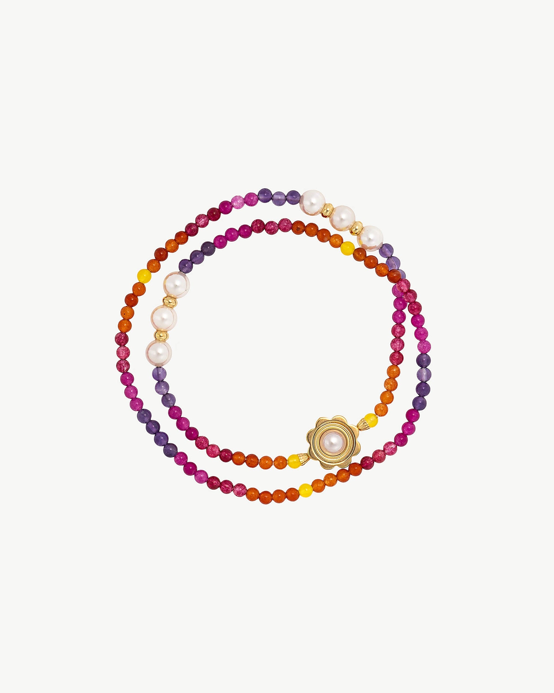 Silver necklace with gold plating and stones in gradient colors of sunset. 6mm white round pearls. 40cm long. Energy and fun of the 2000s If colorful jewelry is your thing, bet everything on the new collection iconic jewelry that is born from the color palette so representative of Y2K, today even elevated to a higher level.Silver necklace with gold plating and stones in gradient colors of sunset. 6mm white round pearls. 40cm long. Energy and fun of the 2000s If colorful jewelry is your thing, bet everything on the new collection iconic jewelry that is born from the color palette so representative of Y2K, today even elevated to a higherSilver necklace with gold plating and stones in gradient colors of sunset. 6mm white round pearls. 40cm long. Energy and fun of the 2000s If colorful jewelry is your thing, bet everything on the new collection iconic jewelry that is born from the color palette so representative of Y2K, today even elevated to a higher