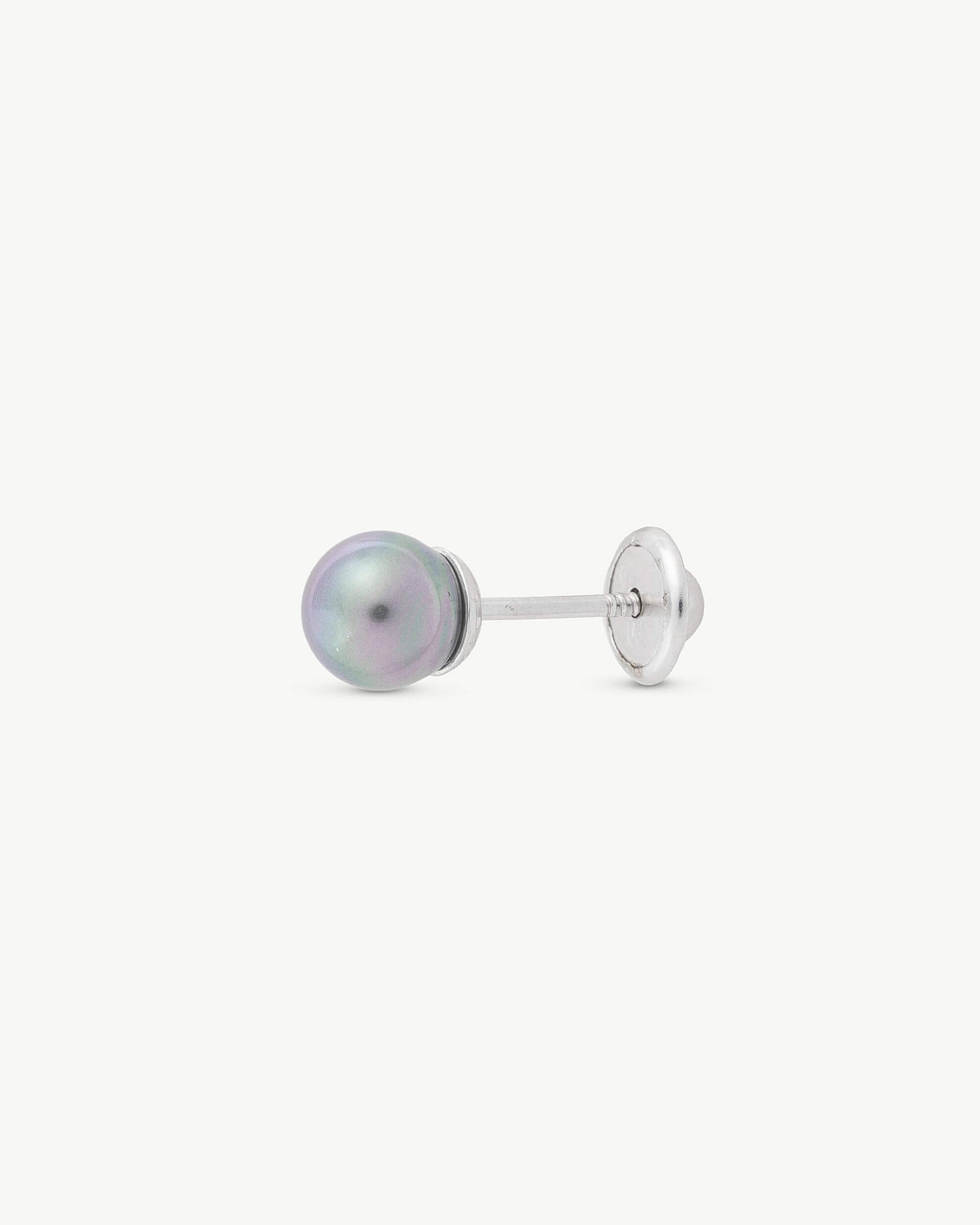 Unit earring in rhodium-plated silver with screw closure, 4mm gray round pearl. Cos is the Majorica collection dedicated to the design of piercings with pearls for the navel and ear.Unit earring in rhodium-plated silver with screw closure, 4mm gray round pearl. Cos is the Majorica collection dedicated to the design of piercings with pearls for the navel and ear.Unit earring in rhodium-plated silver with screw closure, 4mm gray round pearl. Cos is the Majorica collection dedicated to the design of piercings with pearls for the navel and ear.