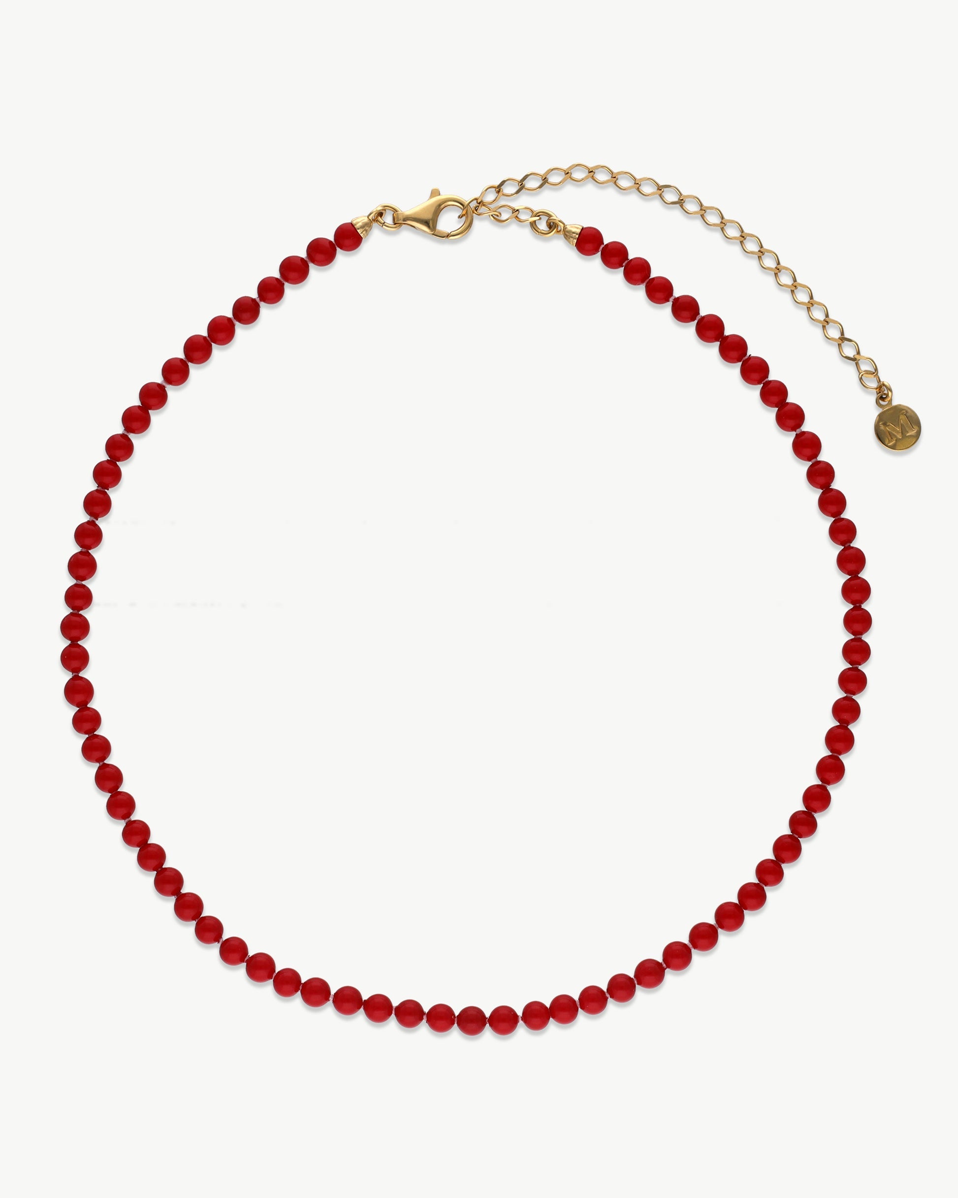 3240cm pearl necklace in gold plated silver, 4mm round red pearls. The timeless collection of single-strand pearl necklaces
