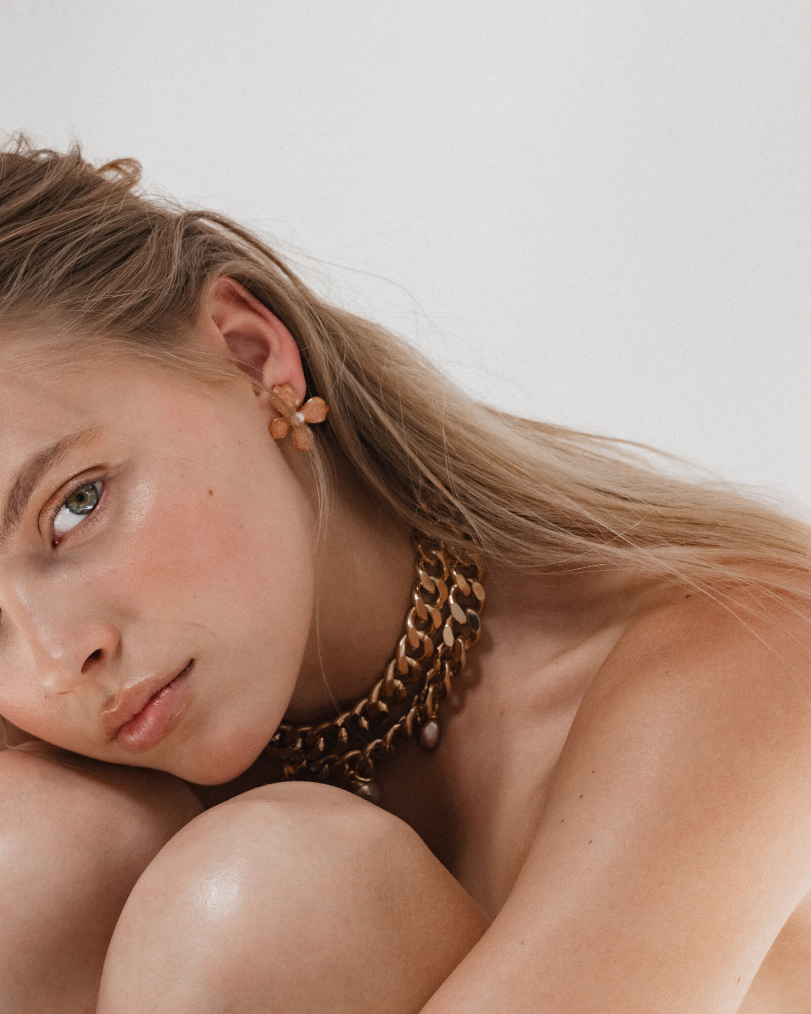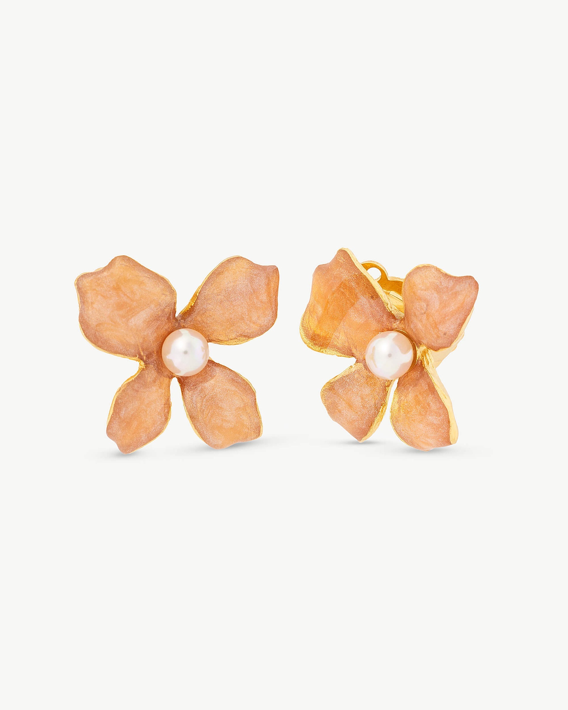 Earrings with omega closure in golden silver with ocher flower and 5mm round white pearls. The enameled flowers on 18k gold-plated silver shine for day and night occasions.The collection brings with it an explosion of color inspired by the beauty of flowers that give life to maximalist jewelry.Earrings with omega closure in golden silver with ocher flower and 5mm round white pearls. The enameled flowers on 18k gold-plated silver shine for day and night occasions. The collection brings with it an explosion of color inspired by the beauty of flowers that give life to maximalist jewelry.Earrings with omega closure in golden silver with ocher flower and 5mm round white pearls. The enameled flowers on 18k gold-plated silver shine for day and night occasions. The collection brings with it an explosion of color inspired by the beauty of flowers that give life to maximalist jewelry.