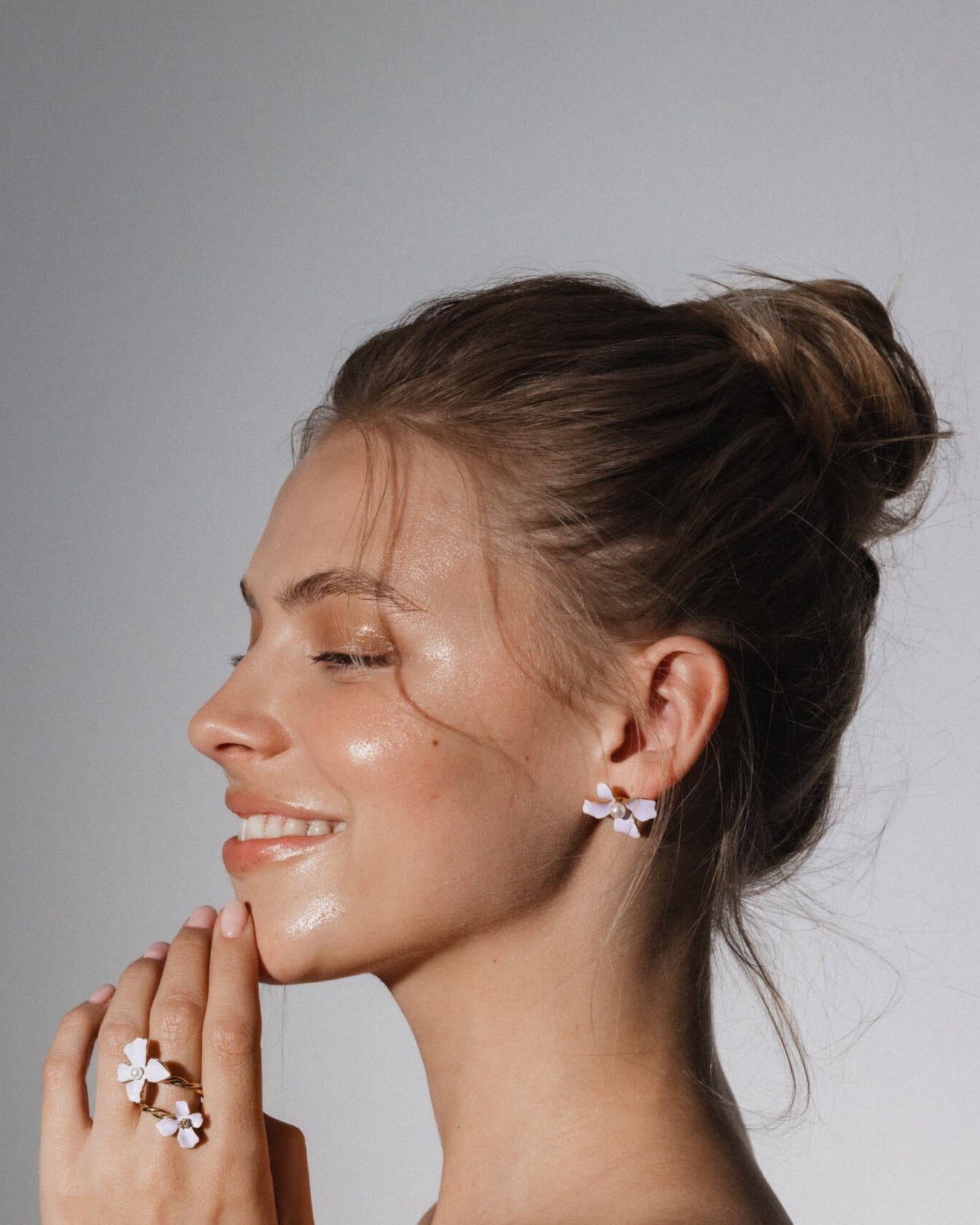 Golden silver spike earrings with white flower and 5mm round white pearls. The enameled flowers on 18k gold-plated silver shine for day and night occasions.The collection brings with it an explosion of color inspired by the beauty of flowers that give life to maximalist jewelry.A collection designed for brides who want to show off a distinctive and original look.Golden silver spike earrings with white flower and 5mm round white pearls. The enameled flowers on 18k gold-plated silver shine for day and night occasions.The collection brings with it an explosion of color inspired by the beauty of flowers that give life to maximalist jewelry. A collection designed for brides who wanGolden silver spike earrings with white flower and 5mm round white pearls. The enameled flowers on 18k gold-plated silver shine for day and night occasions.The collection brings with it an explosion of color inspired by the beauty of flowers that give life to maximalist jewelry. A collection designed for brides who wan