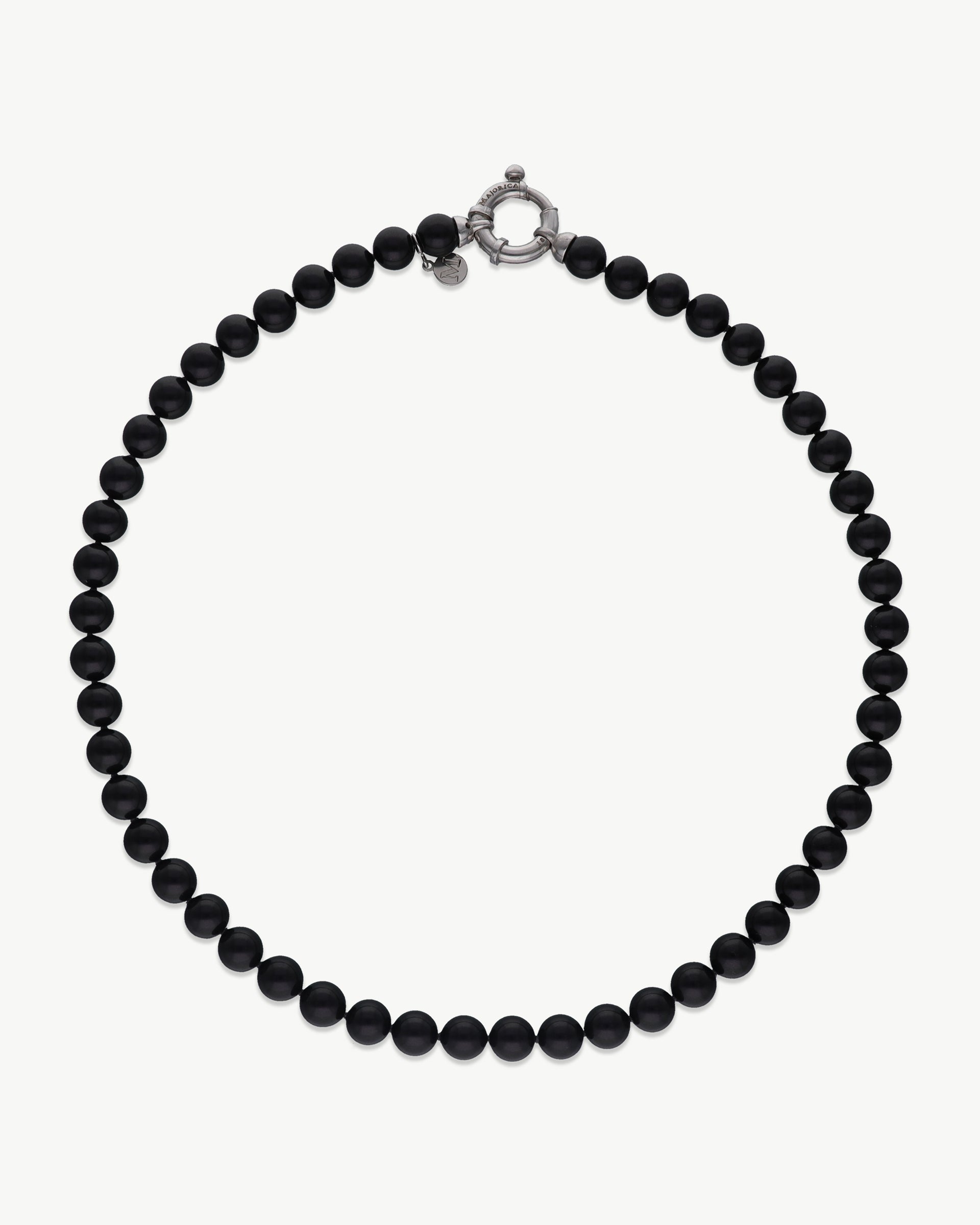 8mm pearl necklace in rhodium-plated silver with black pearls and 45cm long. The timeless collection of single-strand pearl necklaces