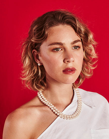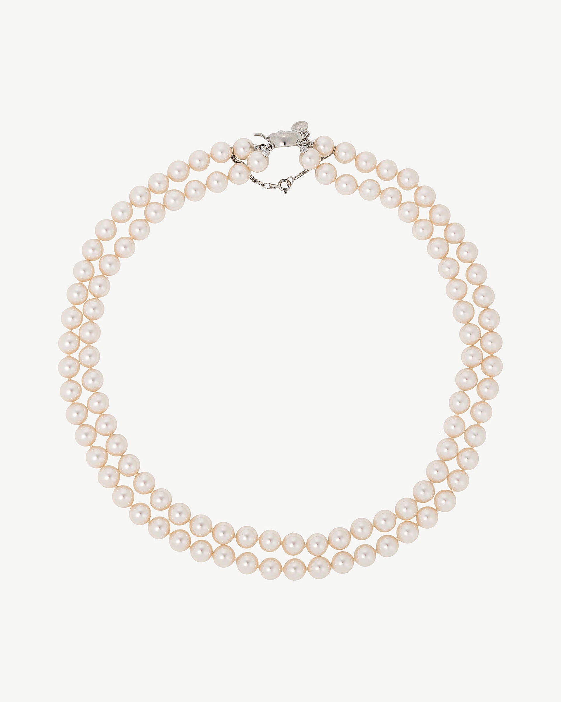 Short 45cm 2-strand necklace in rhodium-plated silver, 8mm white round pearls. The collection introduces an innovative concept in contemporary jewelry with its half-moon or crescent-shaped pearl design.Short 45cm 2-strand necklace in rhodium-plated silver, 8mm white round pearls. The collection introduces an innovative concept in contemporary jewelry with its half-moon or crescent-shaped pearl design.Short 45cm 2-strand necklace in rhodium-plated silver, 8mm white round pearls. The collection introduces an innovative concept in contemporary jewelry with its half-moon or crescent-shaped pearl design.