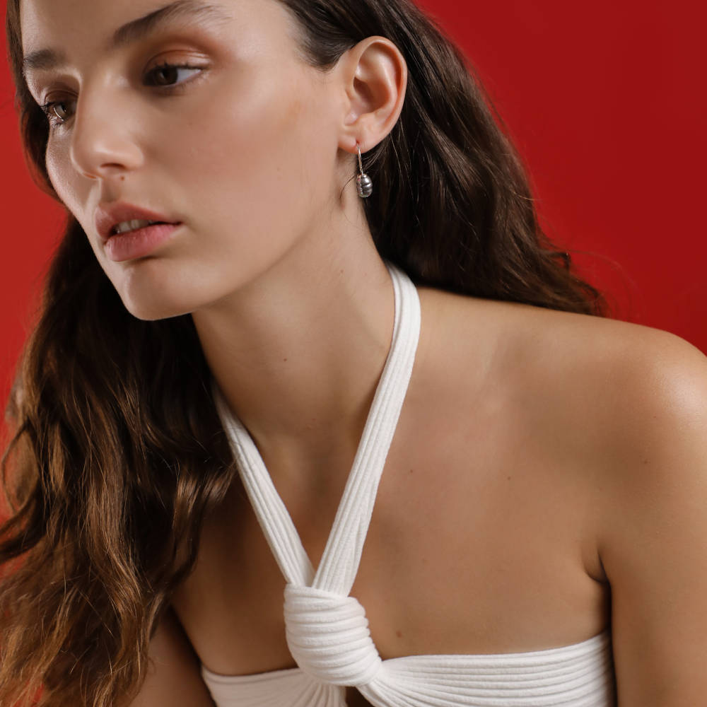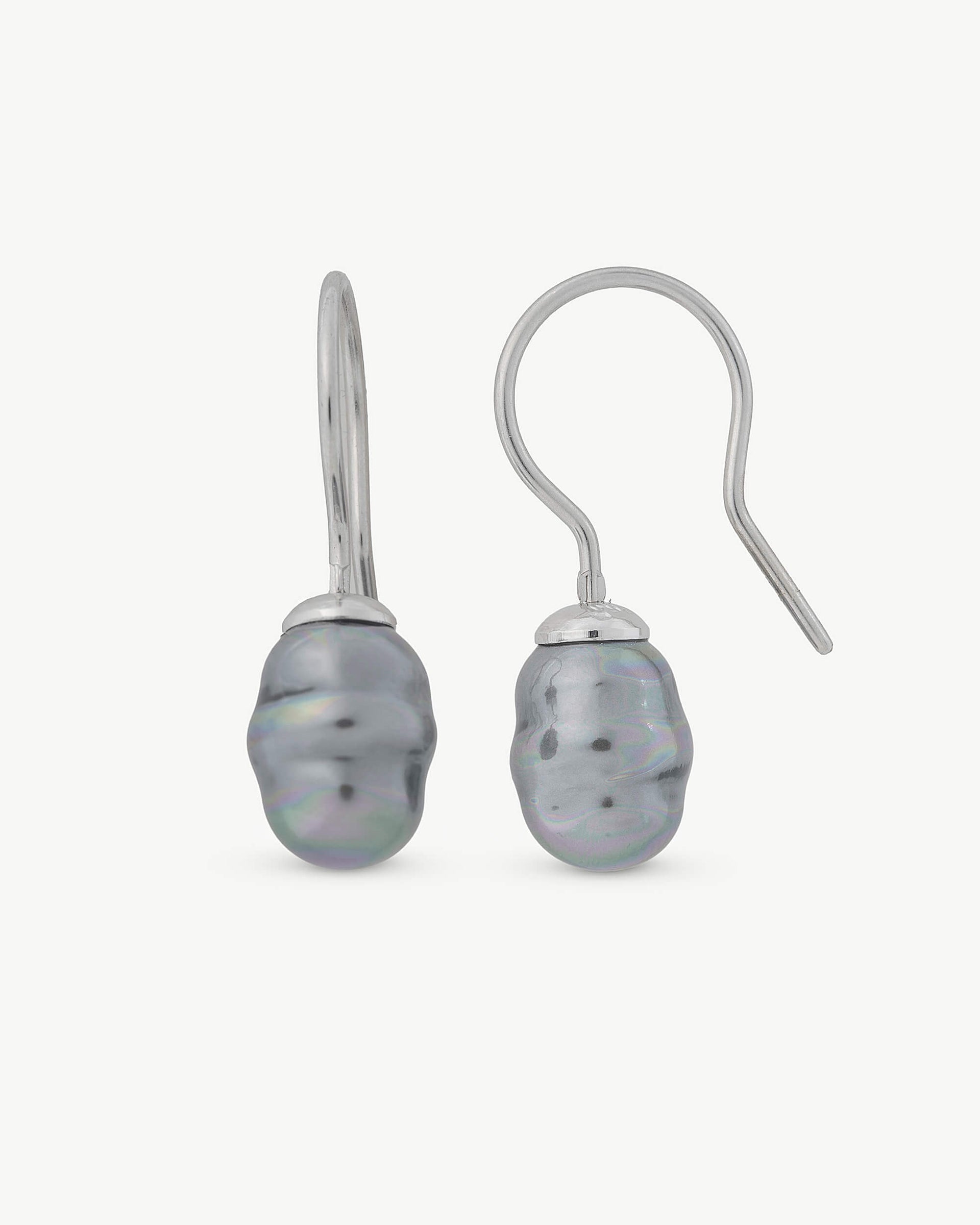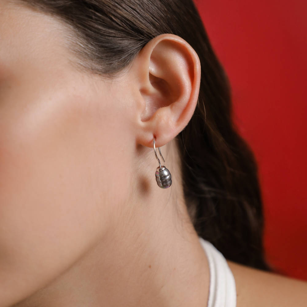 Short hook earrings in rhodium-plated silver, 8 mm gray baroque pearls. Jewelry and pearls with a romantic and very feminine design.Short hook earrings in rhodium-plated silver, 8 mm gray baroque pearls. Jewelry and pearls with a romantic and very feminine design.Short hook earrings in rhodium-plated silver, 8 mm gray baroque pearls. Jewelry and pearls with a romantic and very feminine design.