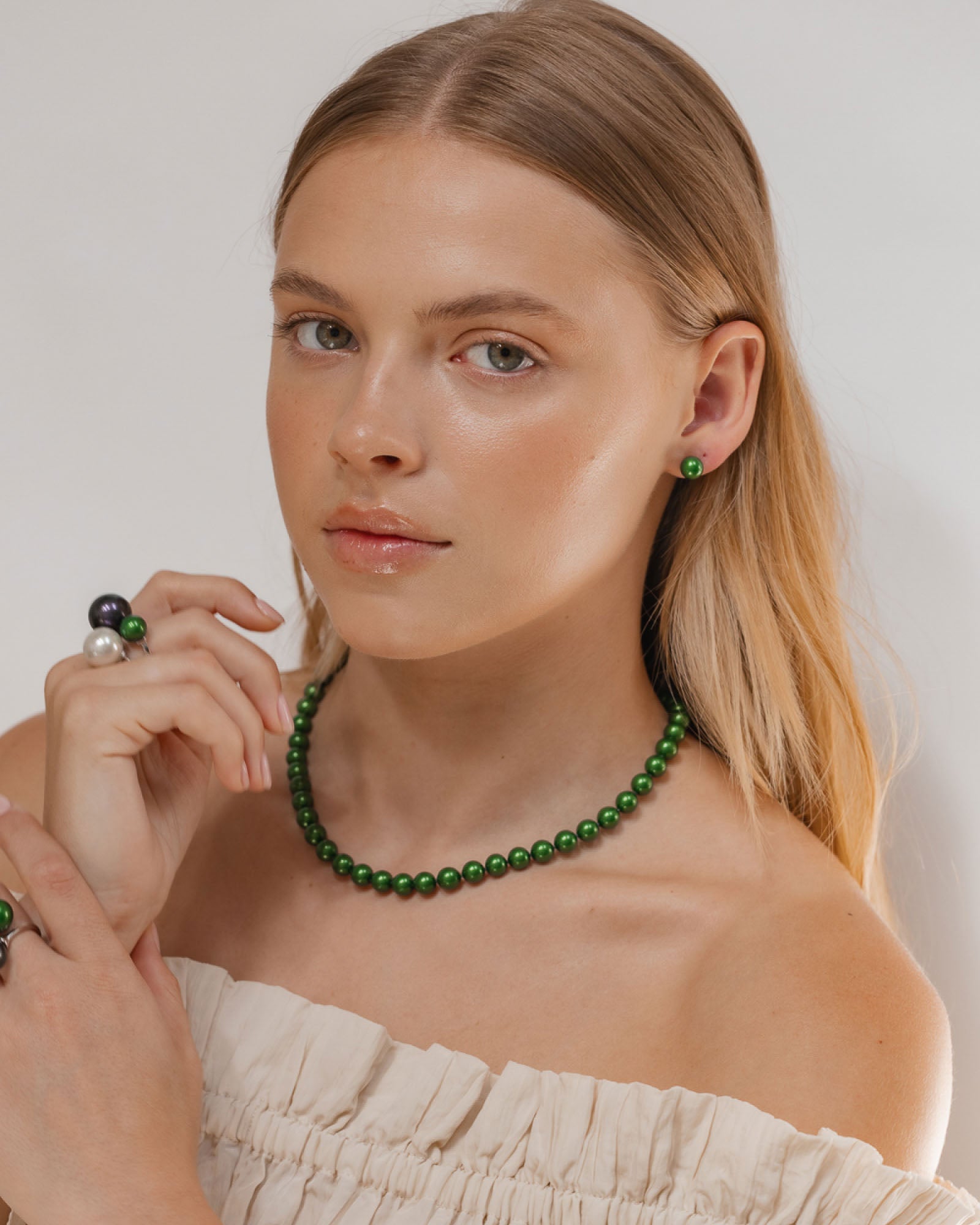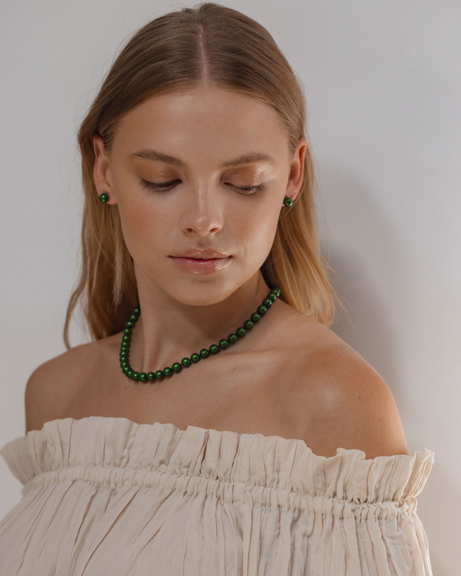 8mm pearl necklace in gold plated silver with green pearls and 45cm long. The timeless collection of single-strand pearl necklaces The Grace Collection captures the essence of the iconic Grace Kelly's timeless sophistication, offering an exclusive range of pearl necklaces that reflect her resolutely simple yet relentlessly elegant style.8mm pearl necklace in gold plated silver with green pearls and 45cm long. The timeless collection of single-strand pearl necklaces The Grace Collection captures the essence of the iconic Grace Kelly's timeless sophistication, offering an exclusive range of pearl necklaces that reflect her resolutely simple yet relentle8mm pearl necklace in gold plated silver with green pearls and 45cm long. The timeless collection of single-strand pearl necklaces The Grace Collection captures the essence of the iconic Grace Kelly's timeless sophistication, offering an exclusive range of pearl necklaces that reflect her resolutely simple yet relentle