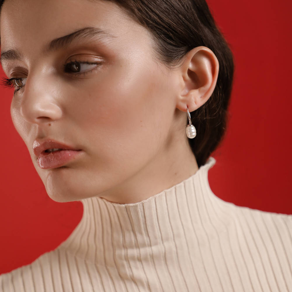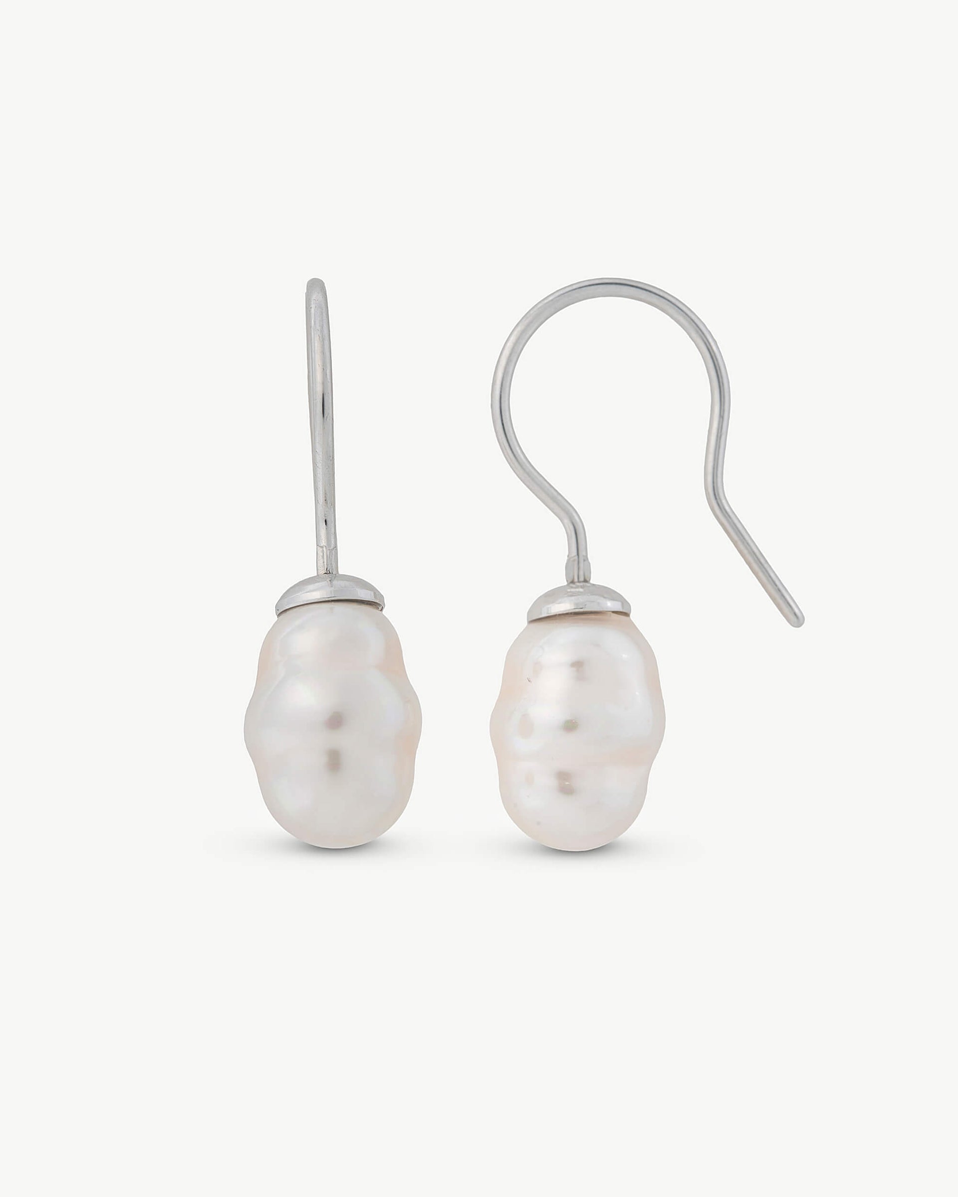 Short hook earrings in rhodium-plated silver, 8 mm white baroque pearls. Jewelry and pearls with a romantic and very feminine design.Short hook earrings in rhodium-plated silver, 8 mm white baroque pearls. Jewelry and pearls with a romantic and very feminine design.Short hook earrings in rhodium-plated silver, 8 mm white baroque pearls. Jewelry and pearls with a romantic and very feminine design.