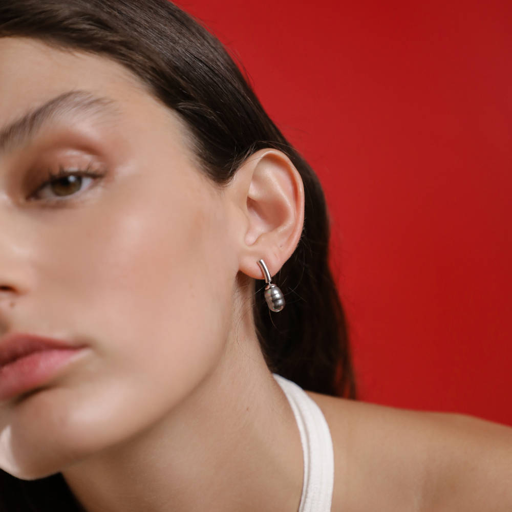 Rhodium-plated silver spike earrings, 8 mm gray baroque pearls. Jewelry and pearls with a romantic and very feminine design.Rhodium-plated silver spike earrings, 8 mm gray baroque pearls. Jewelry and pearls with a romantic and very feminine design.Rhodium-plated silver spike earrings, 8 mm gray baroque pearls. Jewelry and pearls with a romantic and very feminine design.