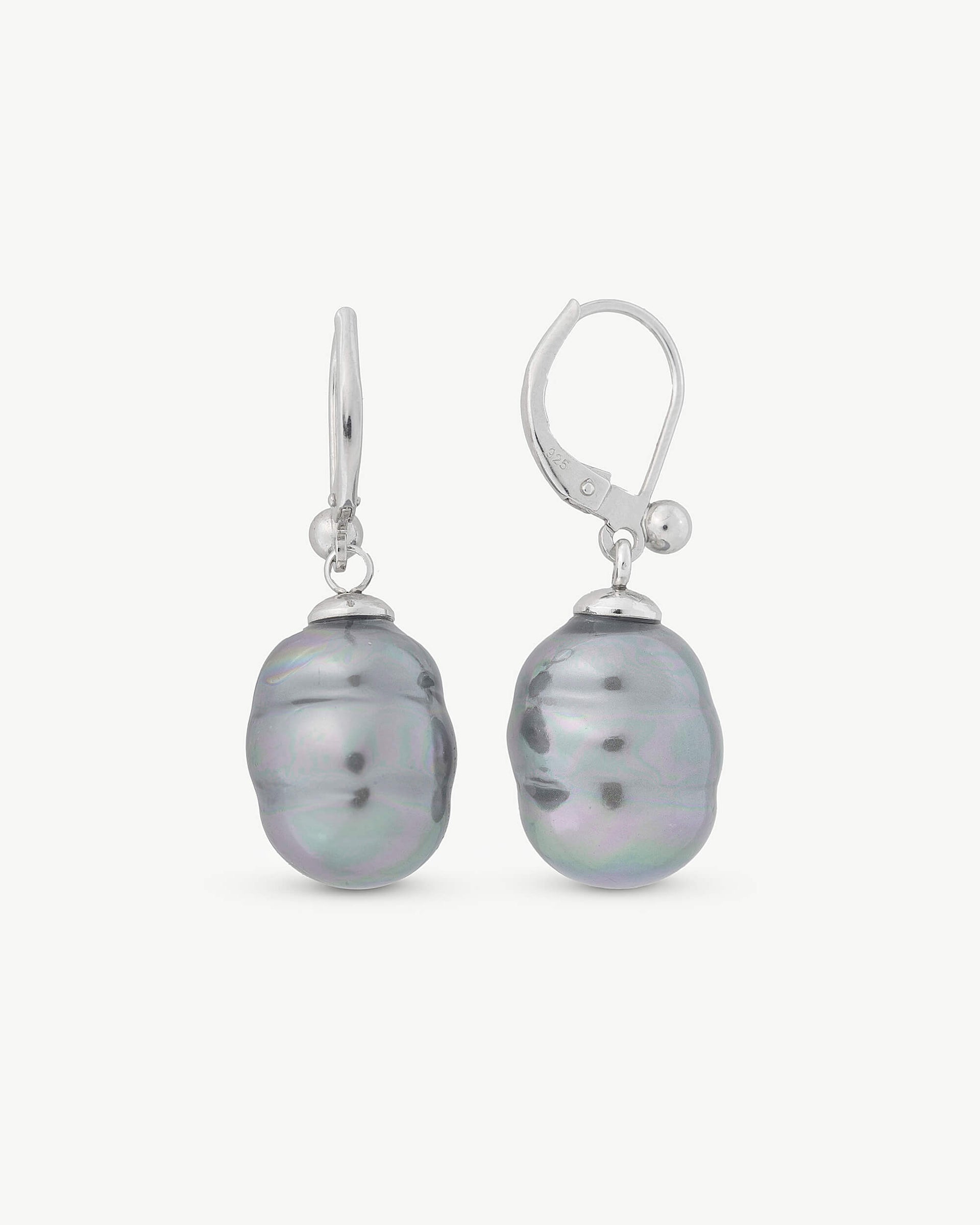 Short French clasp earrings in rhodium-plated silver, 12mm gray baroque pearls. Jewelry and pearls with a romantic and very feminine design.Short French clasp earrings in rhodium-plated silver, 12mm gray baroque pearls. Jewelry and pearls with a romantic and very feminine design.Short French clasp earrings in rhodium-plated silver, 12mm gray baroque pearls. Jewelry and pearls with a romantic and very feminine design.
