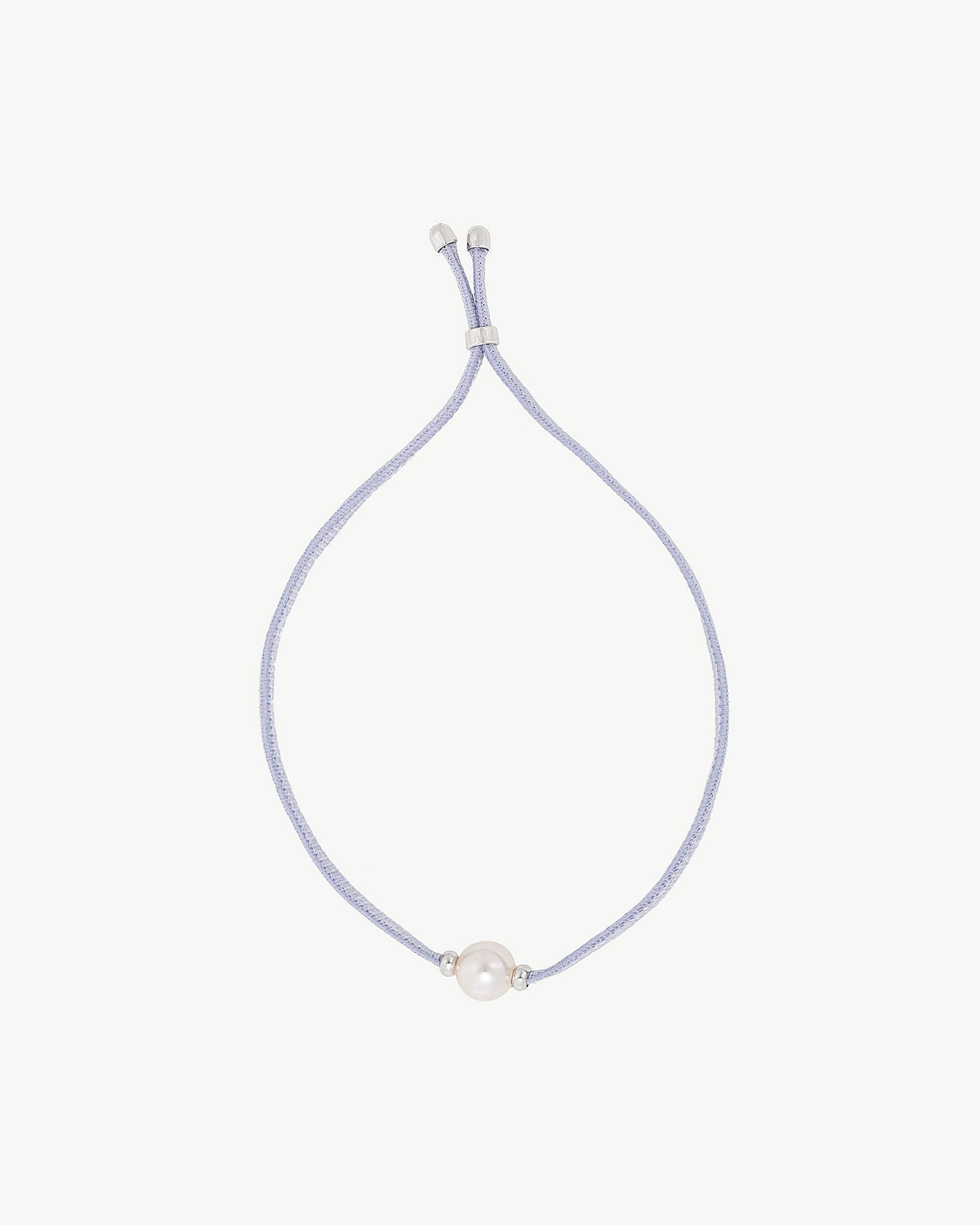 20 cm adjustable elastic bracelet in baby blue, 8 mm white round pearl. The collection is a tribute to strength and empowerment.