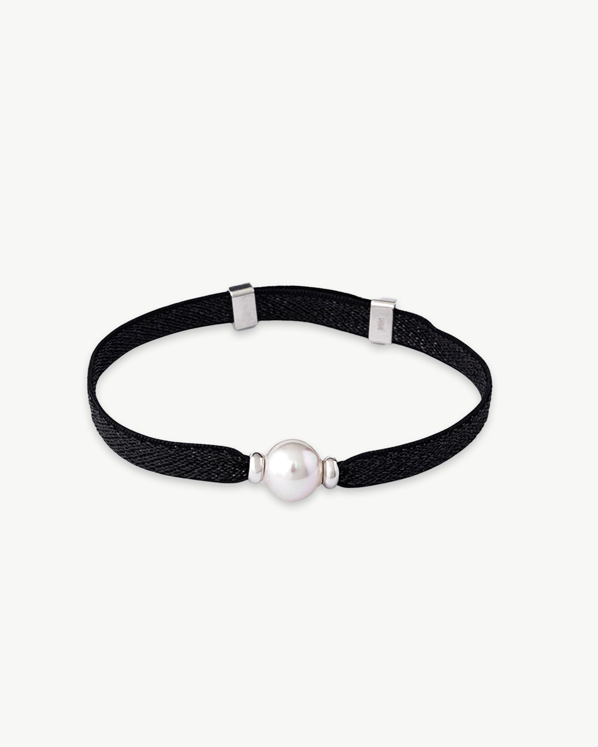 Adjustable elastic bracelet with black silver threads. The jewelry designed by Majorica for the collection will be your new amulet. Comfortable materials and organic shapes come to your favorite jewelry! It is the collection for those who want to carry the Majorica seal always with them.