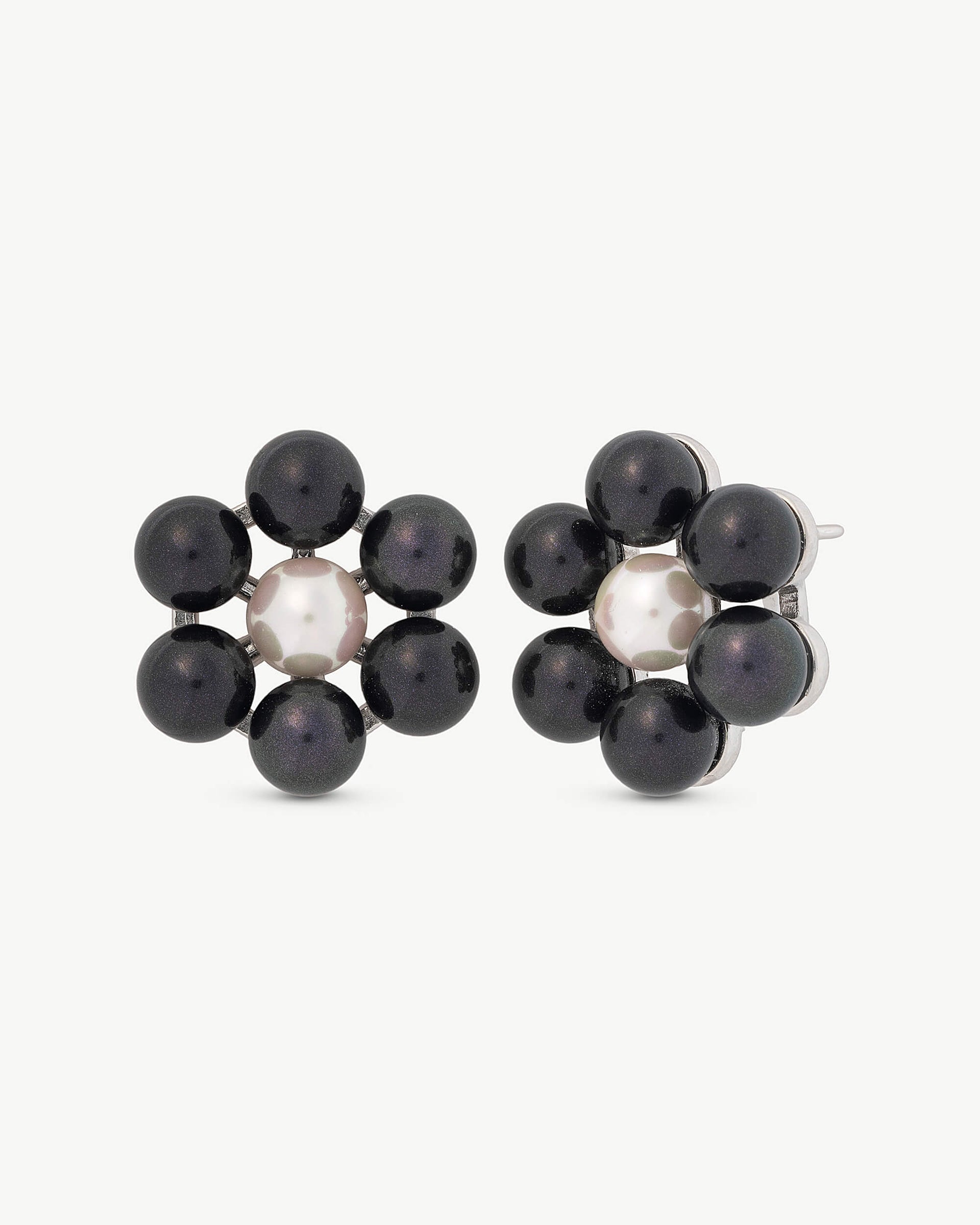 Rhodium-plated silver spike earrings with 6 mm round black and white pearl.The flower-shaped Majorica brooches from the 1940s inspire new collections.The collection is inspired by the flower-shaped closures that Majorica used in the 40s and 50s.Rhodium-plated silver spike earrings with 6 mm round black and white pearl. The flower-shaped Majorica brooches from the 1940s inspire new collections. The collection is inspired by the flower-shaped closures that Majorica used in the 40s and 50s.Rhodium-plated silver spike earrings with 6 mm round black and white pearl. The flower-shaped Majorica brooches from the 1940s inspire new collections. The collection is inspired by the flower-shaped closures that Majorica used in the 40s and 50s.
