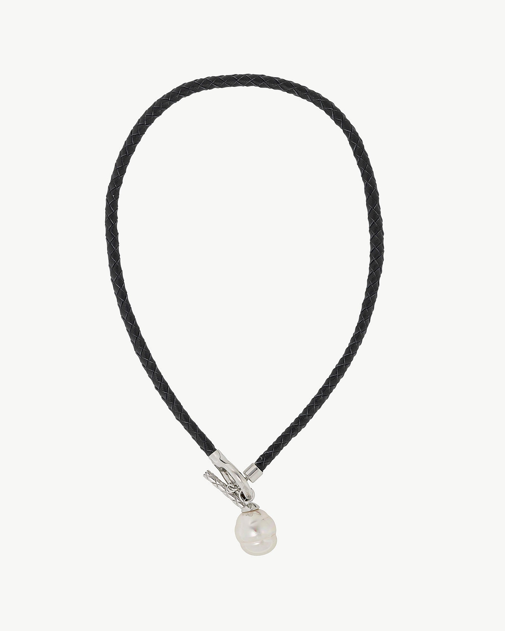 40cm black leather choker in steel, 16mm white baroque pearl.40cm black leather choker in steel, 16mm white baroque pearl.40cm black leather choker in steel, 16mm white baroque pearl.