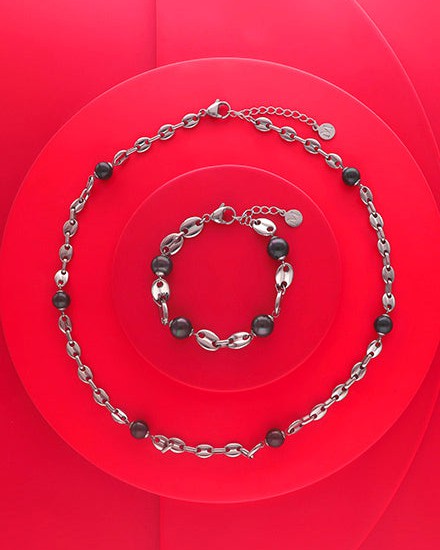 Chained steel necklace with 8mm black pearls and 49cm long. Sailor-inspired jewelry is our exclusive collection of jewelry for men inspired by the sea.Chained steel necklace with 8mm black pearls and 49cm long. Sailor-inspired jewelry is our exclusive collection of jewelry for men inspired by the sea.Chained steel necklace with 8mm black pearls and 49cm long. Sailor-inspired jewelry is our exclusive collection of jewelry for men inspired by the sea.