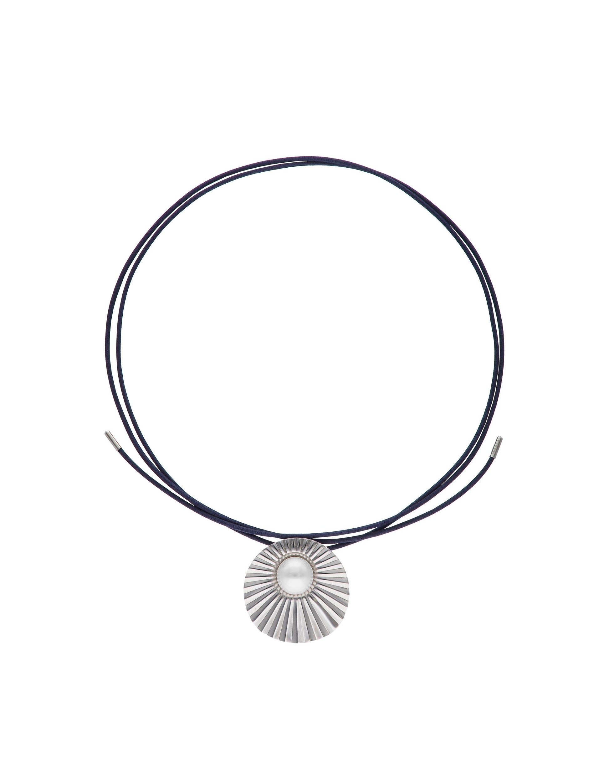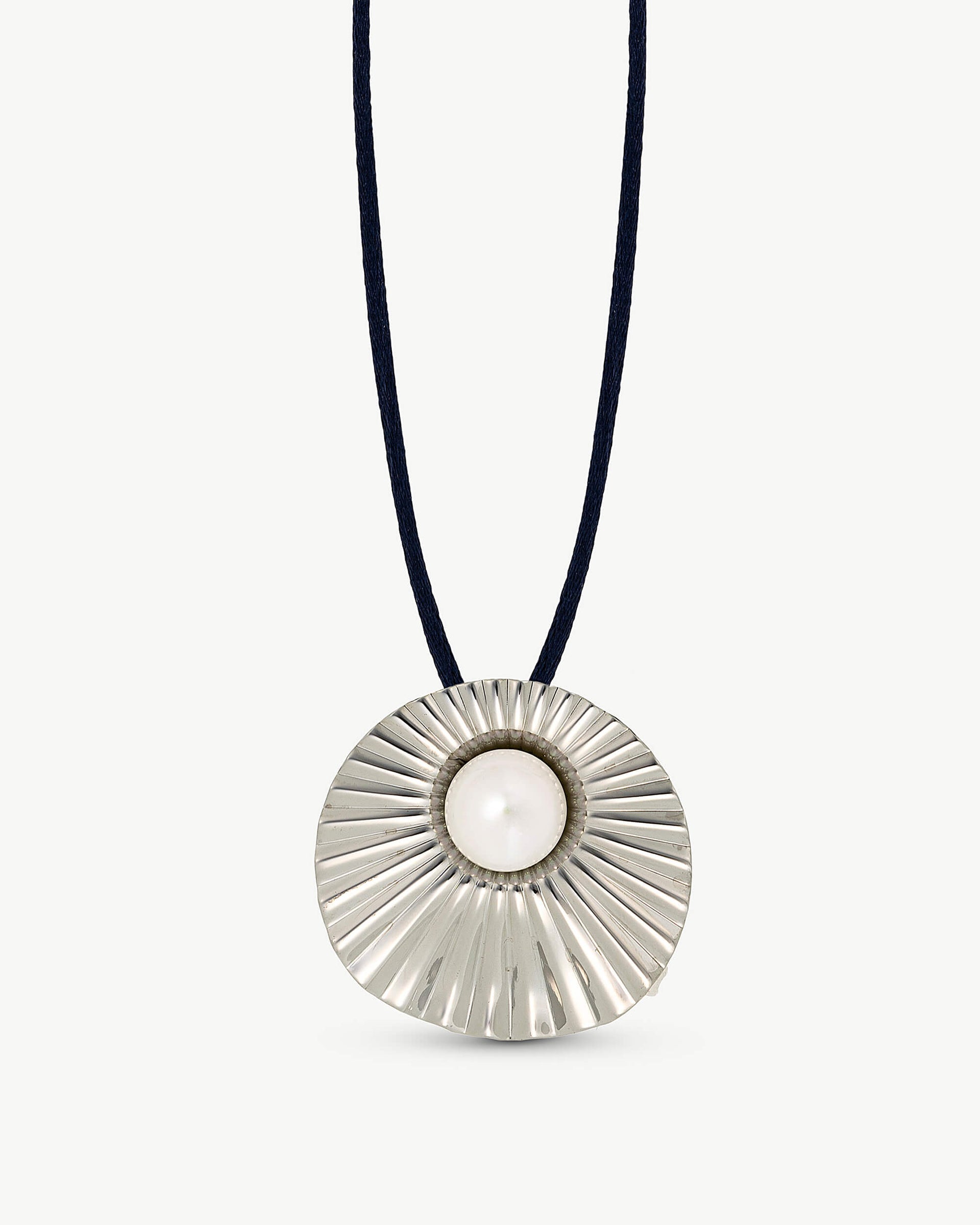 Steel pendant with 14mm white pearl. Blue silk cord 130cm long. Organic nature made into a jewel is born from the need to give life to a collection in which to create unique avant-garde pieces made by hand.Steel pendant with 14mm white pearl. Blue silk cord 130cm long. Organic nature made into a jewel is born from the need to give life to a collection in which to create unique avant-garde pieces made by hand.Steel pendant with 14mm white pearl. Blue silk cord 130cm long. Organic nature made into a jewel is born from the need to give life to a collection in which to create unique avant-garde pieces made by hand.