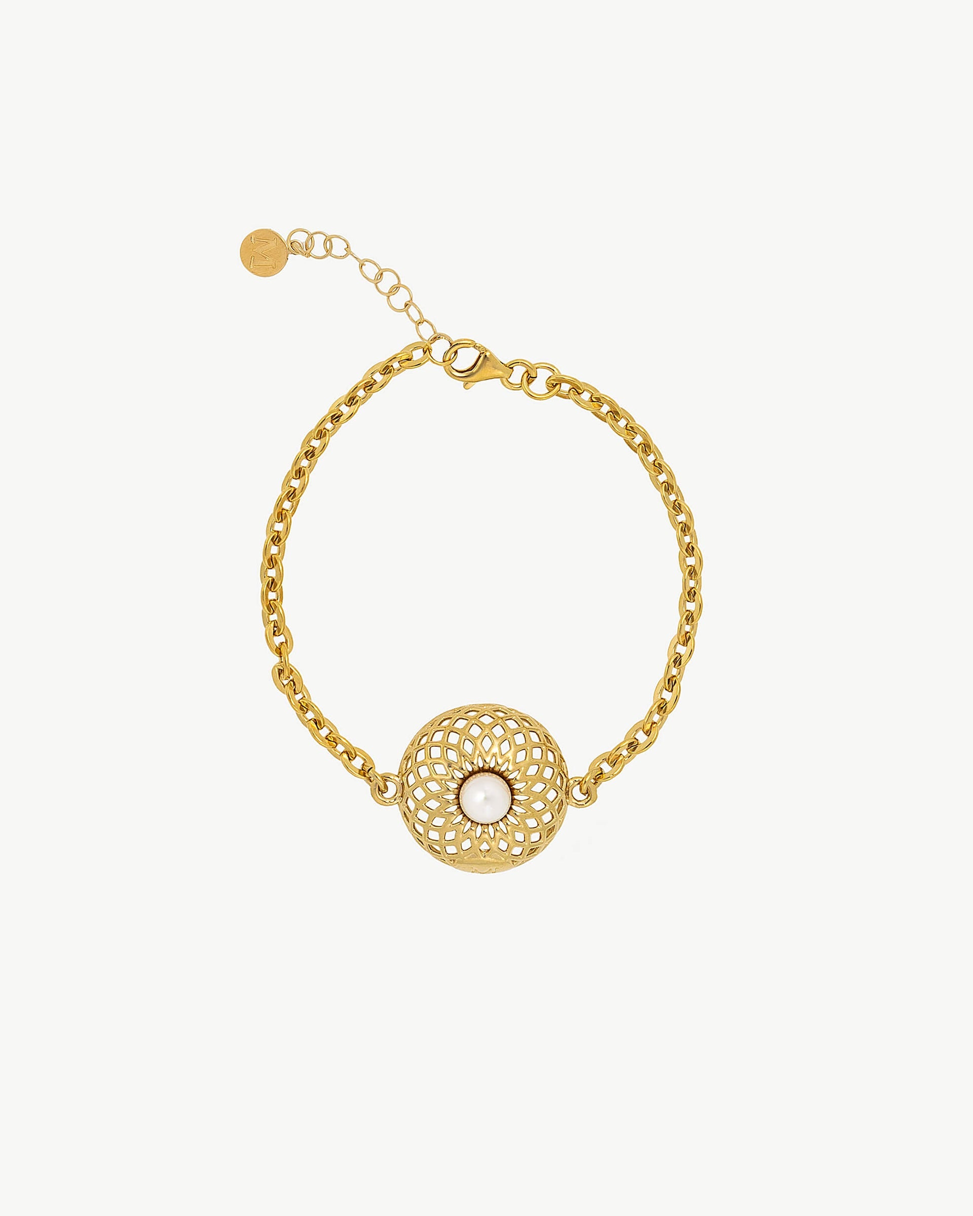 Chained bracelet in gold-plated silver. 6mm round white pearl 16cm long. Geometry and architecture to inspire the design and silhouettes of the jewels in the collection, the highest volcano in Europe and one of the most active in the world, located on the island of Sicily.Chained bracelet in gold-plated silver. 6mm round white pearl 16cm long. Geometry and architecture to inspire the design and silhouettes of the jewels in the collection, the highest volcano in Europe and one of the most active in the world, located on the island of Sicily.Chained bracelet in gold-plated silver. 6mm round white pearl 16cm long. Geometry and architecture to inspire the design and silhouettes of the jewels in the collection, the highest volcano in Europe and one of the most active in the world, located on the island of Sicily.