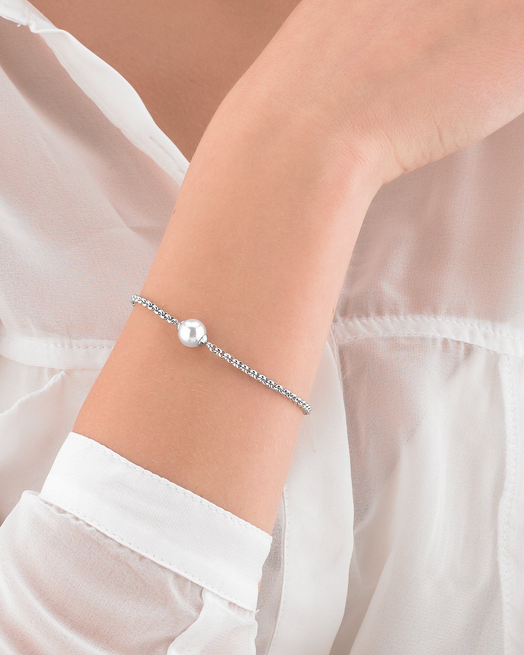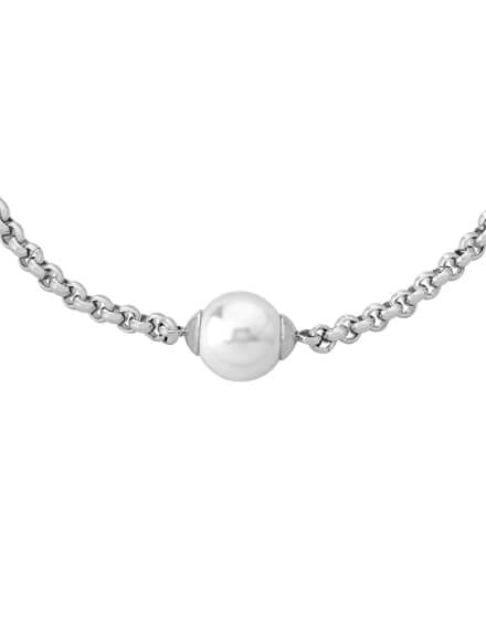 Rhodium-plated steel bracelet, 8mm white round pearl. Its design provides fresh and versatile air, allowing you to express your personal style for any occasion.