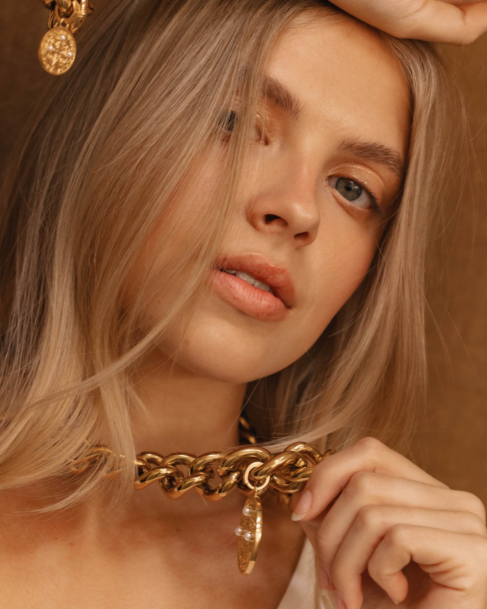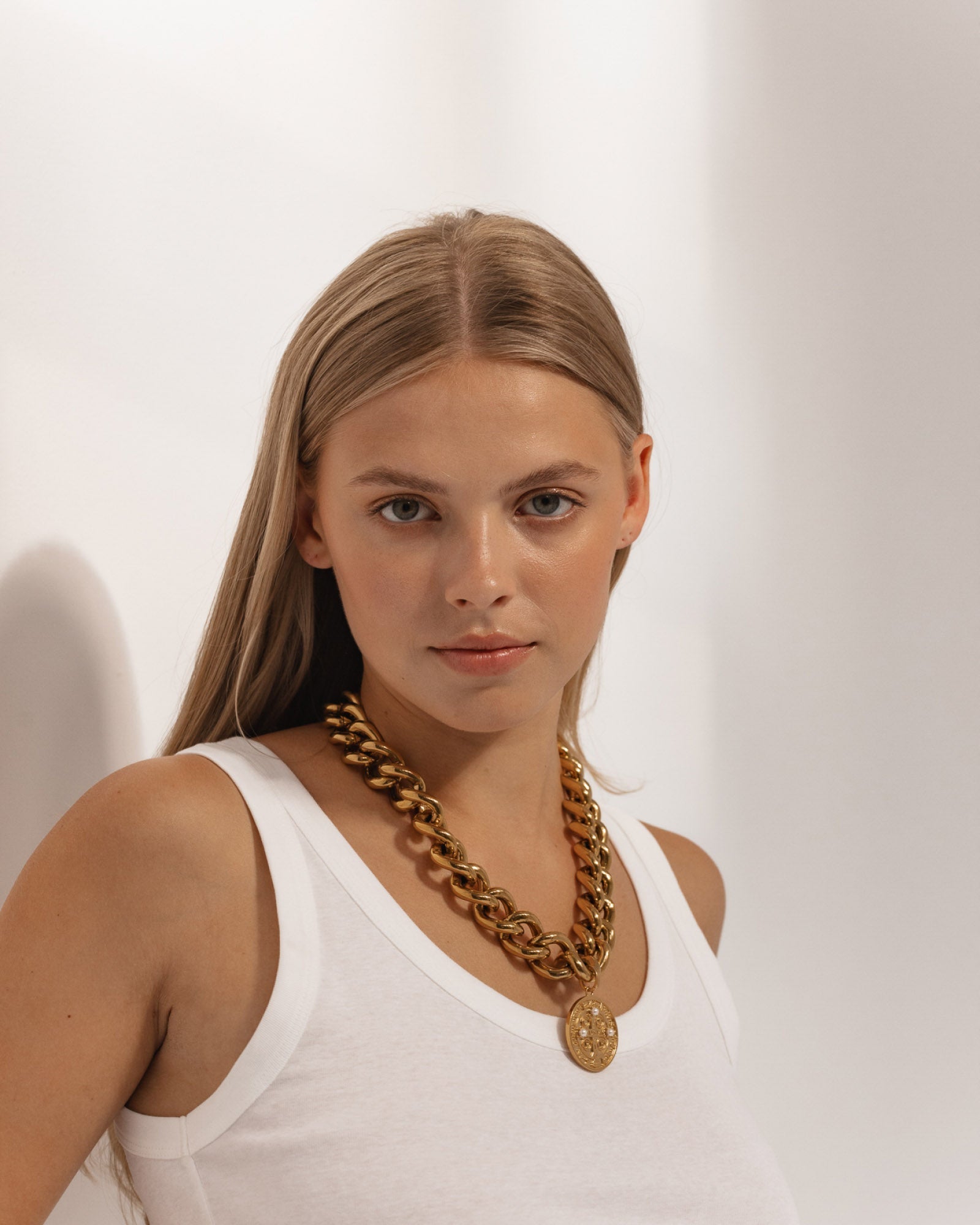 Thick chain necklace with 50cm toggle clasp. Stunning chain necklaces and bracelets are accompanied by medals and talismans with different meanings. In the great universe of fashion, talismans and amulets have emerged not only as accessories of great beauty and individuality, but also as objects of profound meaning. Today, they have returned to being used as jewellery, mainly attached to a pearl necklace or a chain.Thick chain necklace with 50cm toggle clasp. Stunning chain necklaces and bracelets are accompanied by medals and talismans with different meanings. In the great universe of fashion, talismans and amulets have emerged not only as accessories of great beauty and individuality, but also as objects of profound meaning. ToThick chain necklace with 50cm toggle clasp. Stunning chain necklaces and bracelets are accompanied by medals and talismans with different meanings. In the great universe of fashion, talismans and amulets have emerged not only as accessories of great beauty and individuality, but also as objects of profound meaning. To