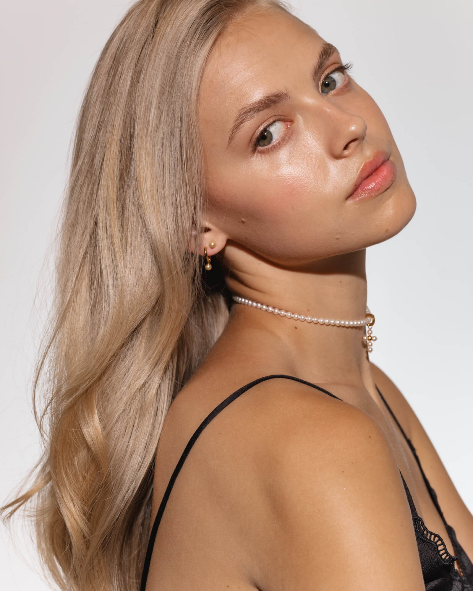 The collection offers a versatile chain base for hanging mini hoop or small hoop earrings, with 4 mm pearls in exclusive colors.