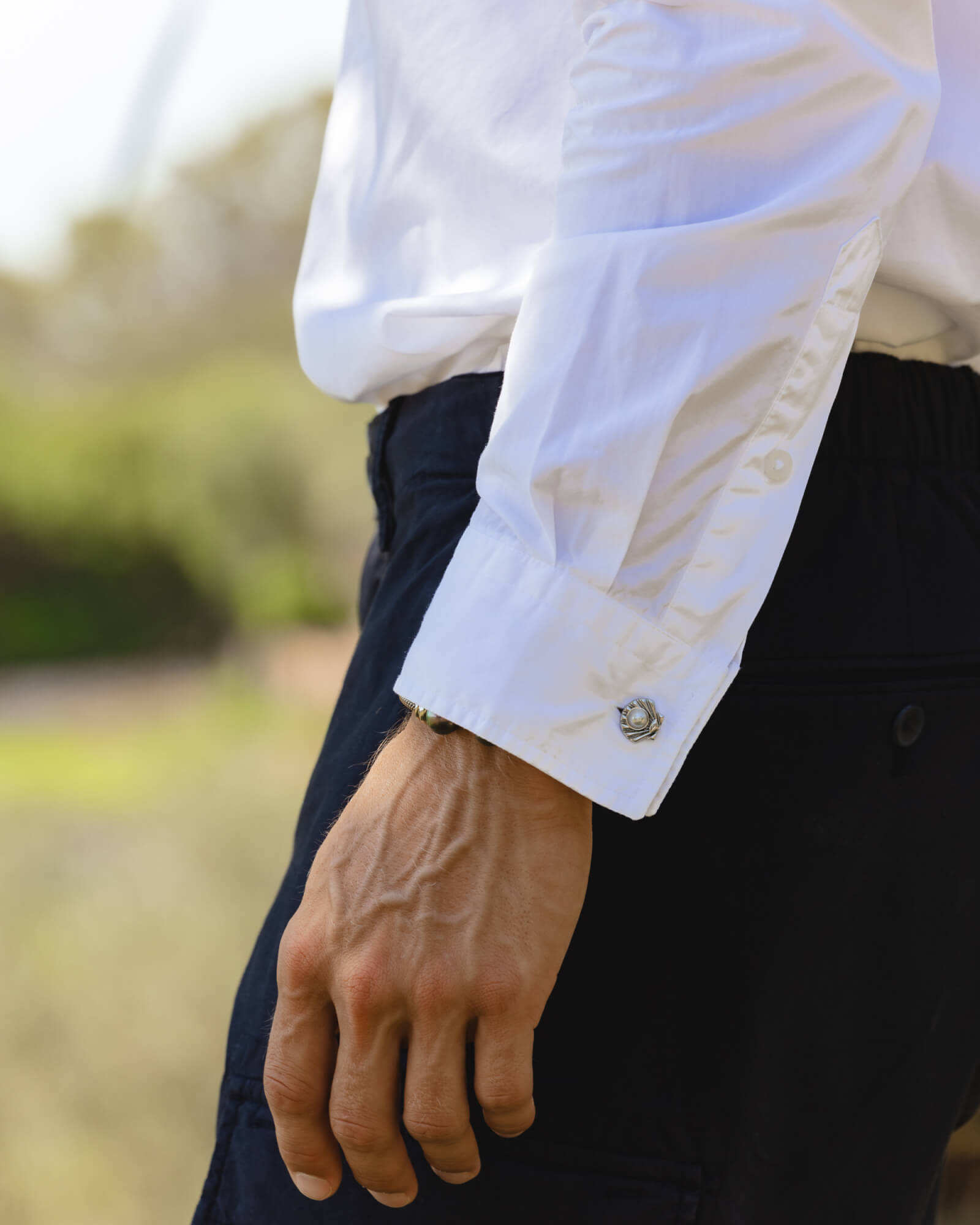 Shell cufflinks in steel with a 4mm white half pearl. Pins with pearls that tell your own story The collection represents everything that can be good for those who have a taste for the exceptional.Shell cufflinks in steel with a 4mm white half pearl. Pins with pearls that tell your own story The collection represents everything that can be good for those who have a taste for the exceptional.Shell cufflinks in steel with a 4mm white half pearl. Pins with pearls that tell your own story The collection represents everything that can be good for those who have a taste for the exceptional.