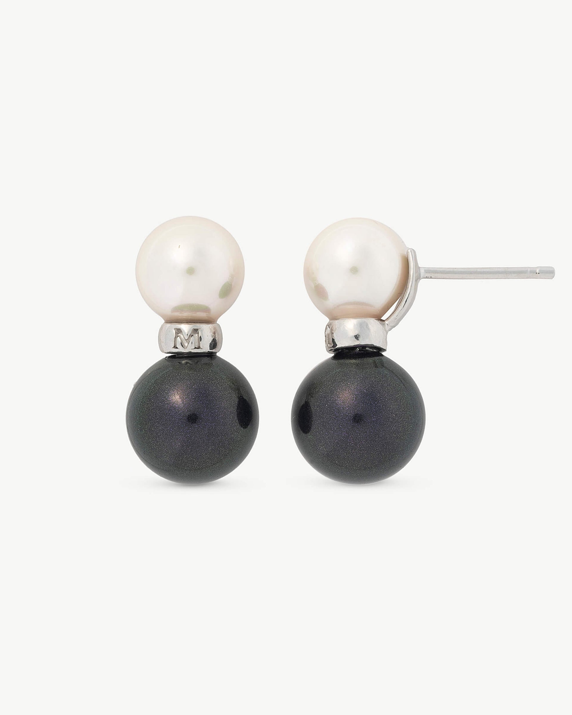 Silver earring with spike closure. Double white and black pearl of 8 and 10mm.Combining pearls with each other in a particular way inspired by the 50s is fashionable.Silver earring with spike closure. Double white and black pearl of 8 and 10mm. Combining pearls with each other in a particular way inspired by the 50s is fashionable.Silver earring with spike closure. Double white and black pearl of 8 and 10mm. Combining pearls with each other in a particular way inspired by the 50s is fashionable.