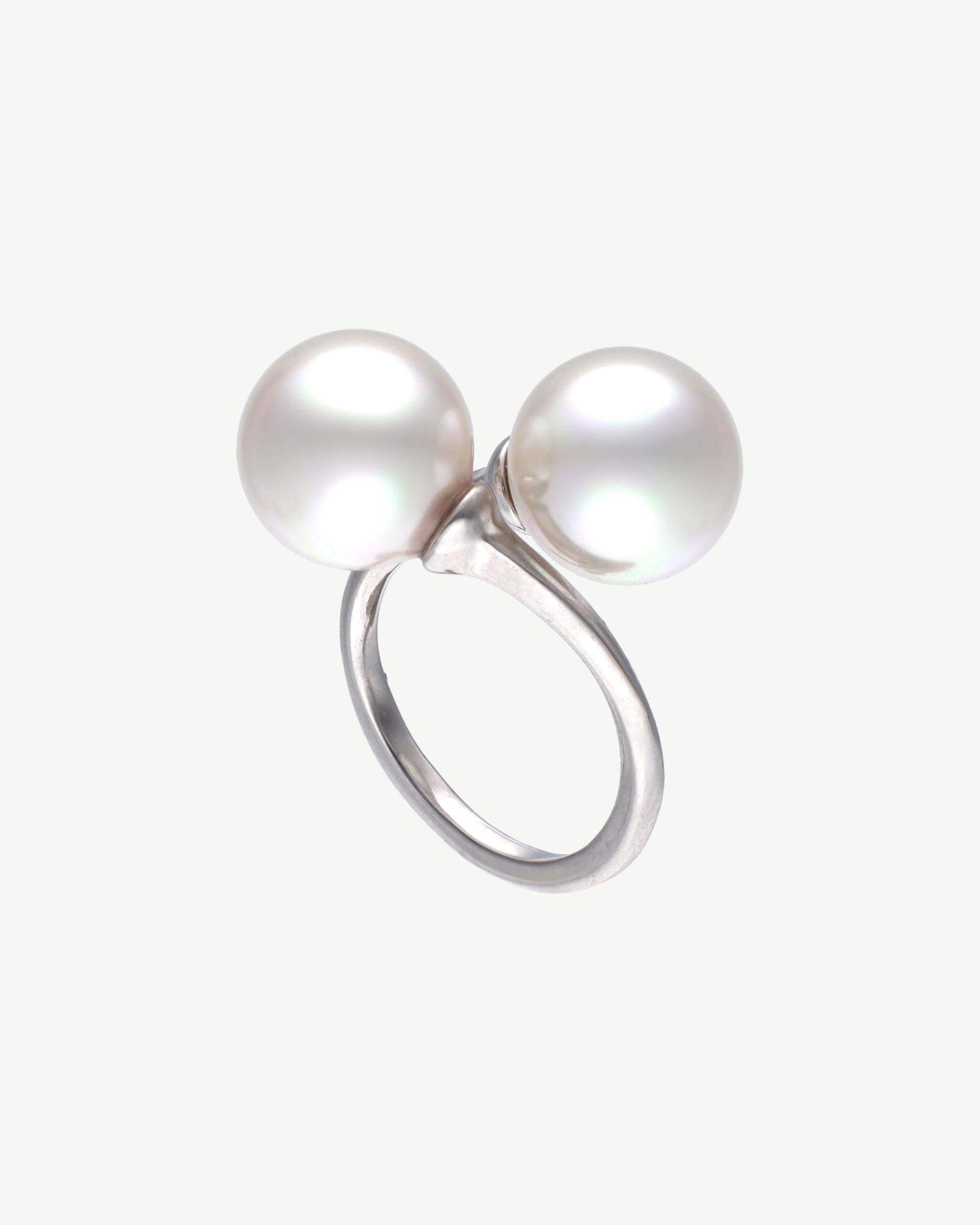 Open ring in silver with 12mm white round pearls.Combining pearls with each other in a particular way inspired by the 50s is fashionable.Open ring in silver with 12mm white round pearls. Combining pearls with each other in a particular way inspired by the 50s is fashionable.Open ring in silver with 12mm white round pearls. Combining pearls with each other in a particular way inspired by the 50s is fashionable.