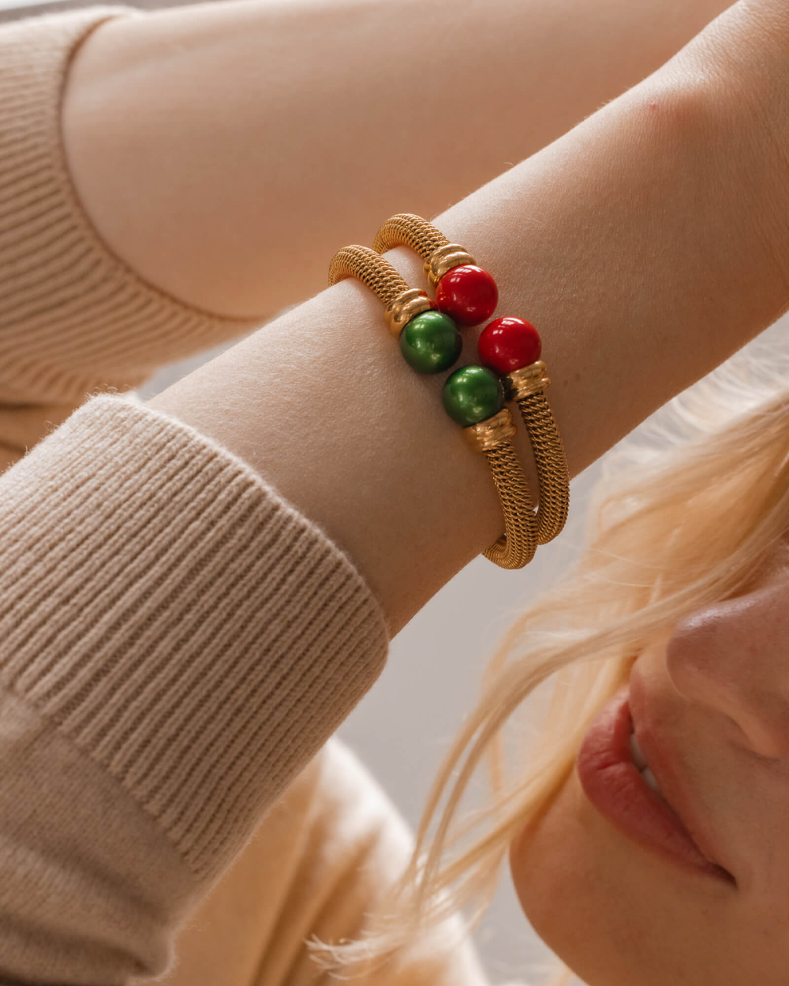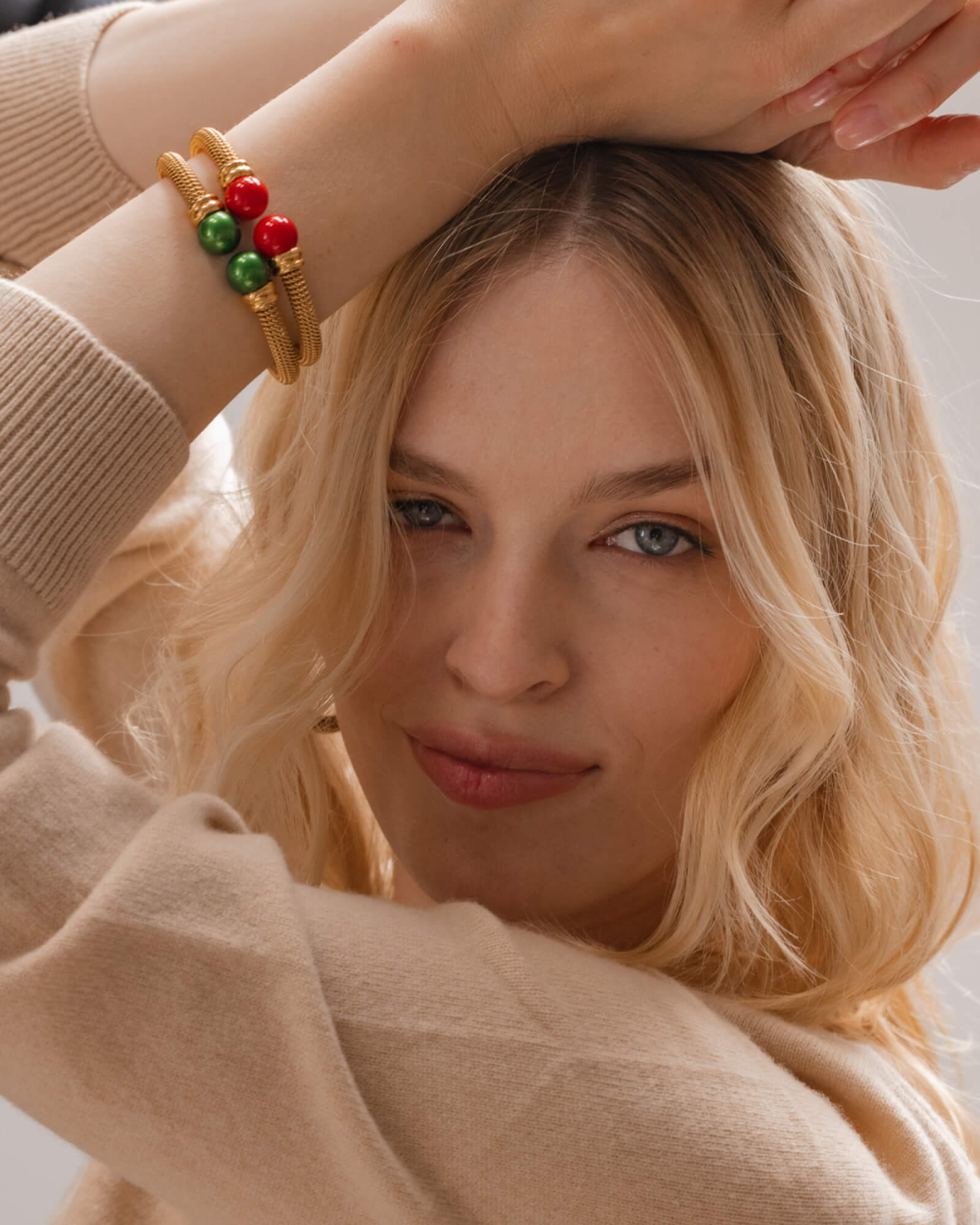 Rigid gold-tone steel bracelet, 12mm green round pearls.For this collection of bracelets, rings and earrings, made of high-quality steel and adorned with pearls, each piece has been created to combine the sobriety of steel with the timelessness of pearls.Rigid gold-tone steel bracelet, 12mm green round pearls. For this collection of bracelets, rings and earrings, made of high-quality steel and adorned with pearls, each piece has been created to combine the sobriety of steel with the timelessness of pearls.Rigid gold-tone steel bracelet, 12mm green round pearls. For this collection of bracelets, rings and earrings, made of high-quality steel and adorned with pearls, each piece has been created to combine the sobriety of steel with the timelessness of pearls.