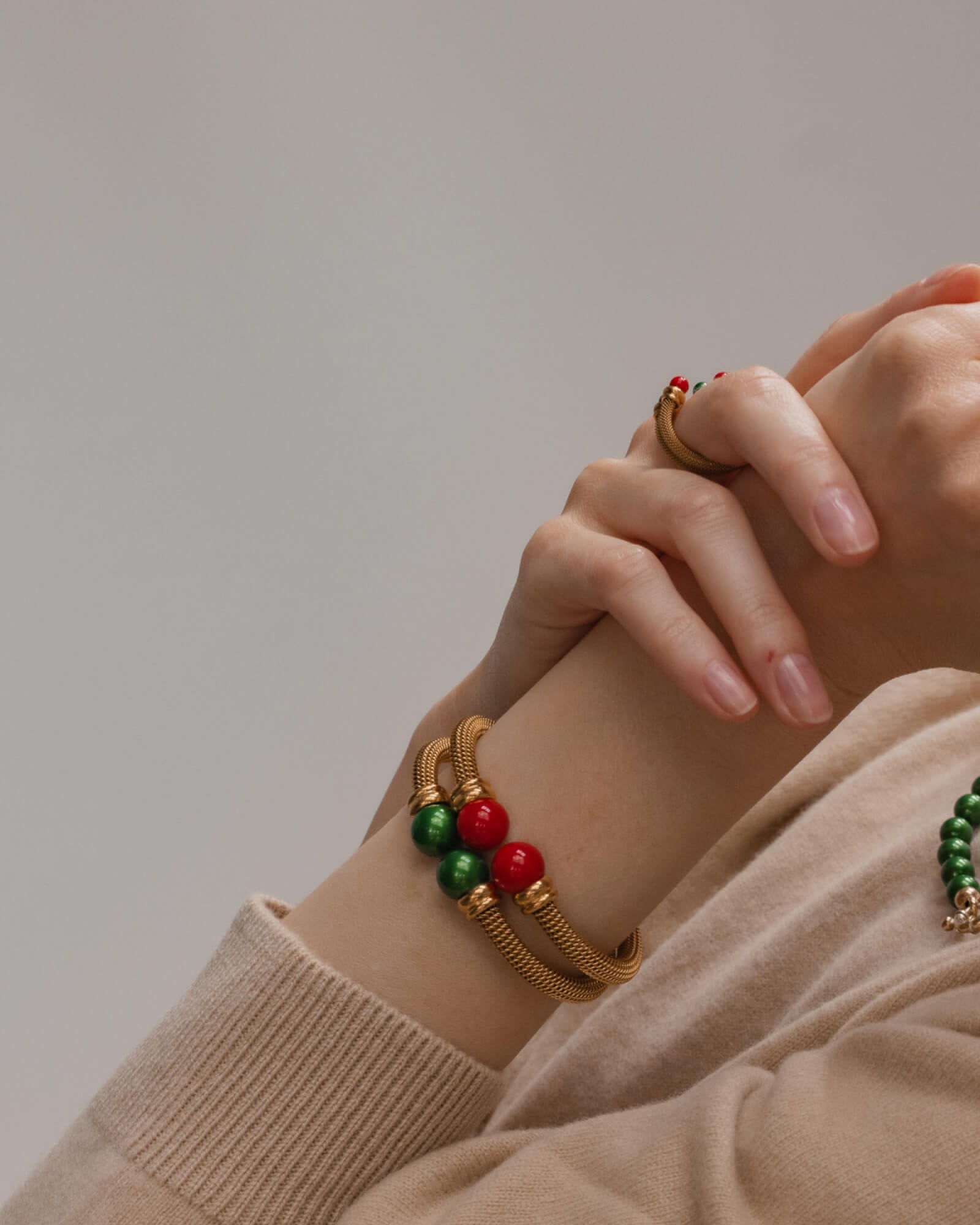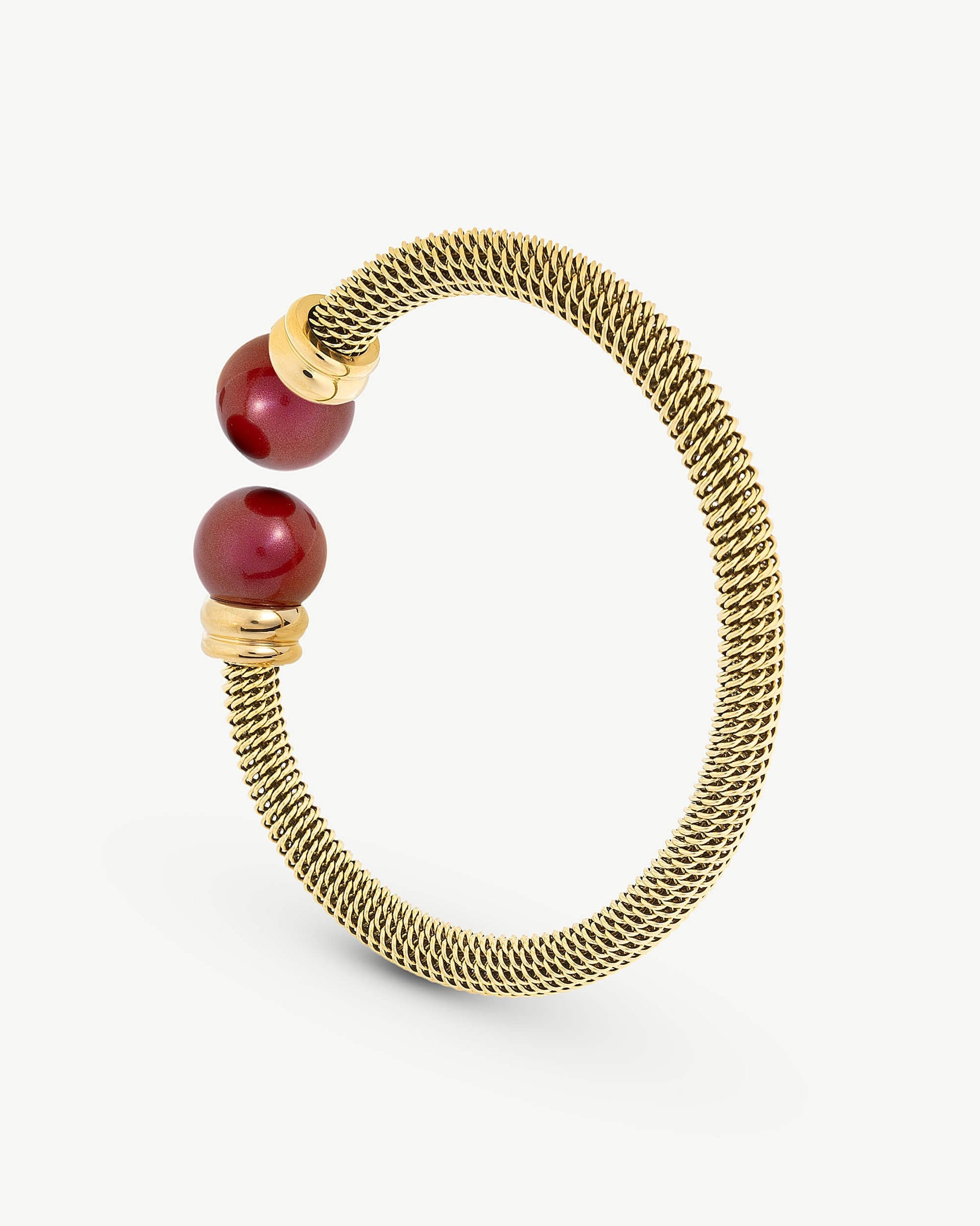 Rigid bracelet in gold steel, 12mm round red pearls. For this collection of bracelets, rings and earrings, made of high-quality steel and adorned with pearls, each piece has been created to combine the sobriety of steel with the timelessness of pearls.Rigid bracelet in gold steel, 12mm round red pearls. For this collection of bracelets, rings and earrings, made of high-quality steel and adorned with pearls, each piece has been created to combine the sobriety of steel with the timelessness of pearls.Rigid bracelet in gold steel, 12mm round red pearls. For this collection of bracelets, rings and earrings, made of high-quality steel and adorned with pearls, each piece has been created to combine the sobriety of steel with the timelessness of pearls.