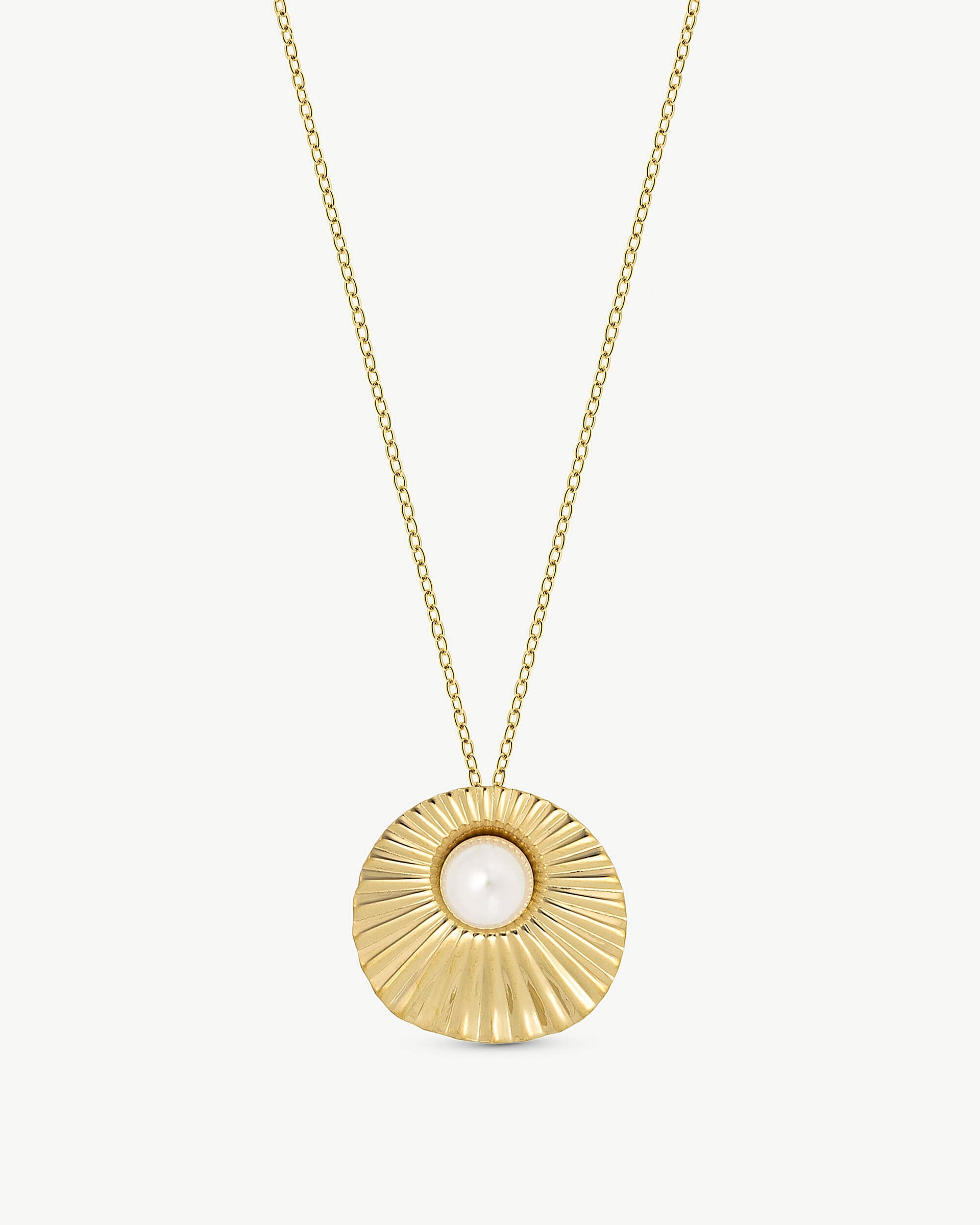 Pendant with chain in gold steel. 9mm white round pearl. Length 42 cm. Organic nature turned into jewelery was born from the need to give life to a collection in which to create unique, avant-garde pieces made by hand.Pendant with chain in gold steel. 9mm white round pearl. Length 42 cm. Organic nature turned into jewelery was born from the need to give life to a collection in which to create unique, avant-garde pieces made by hand.Pendant with chain in gold steel. 9mm white round pearl. Length 42 cm. Organic nature turned into jewelery was born from the need to give life to a collection in which to create unique, avant-garde pieces made by hand.