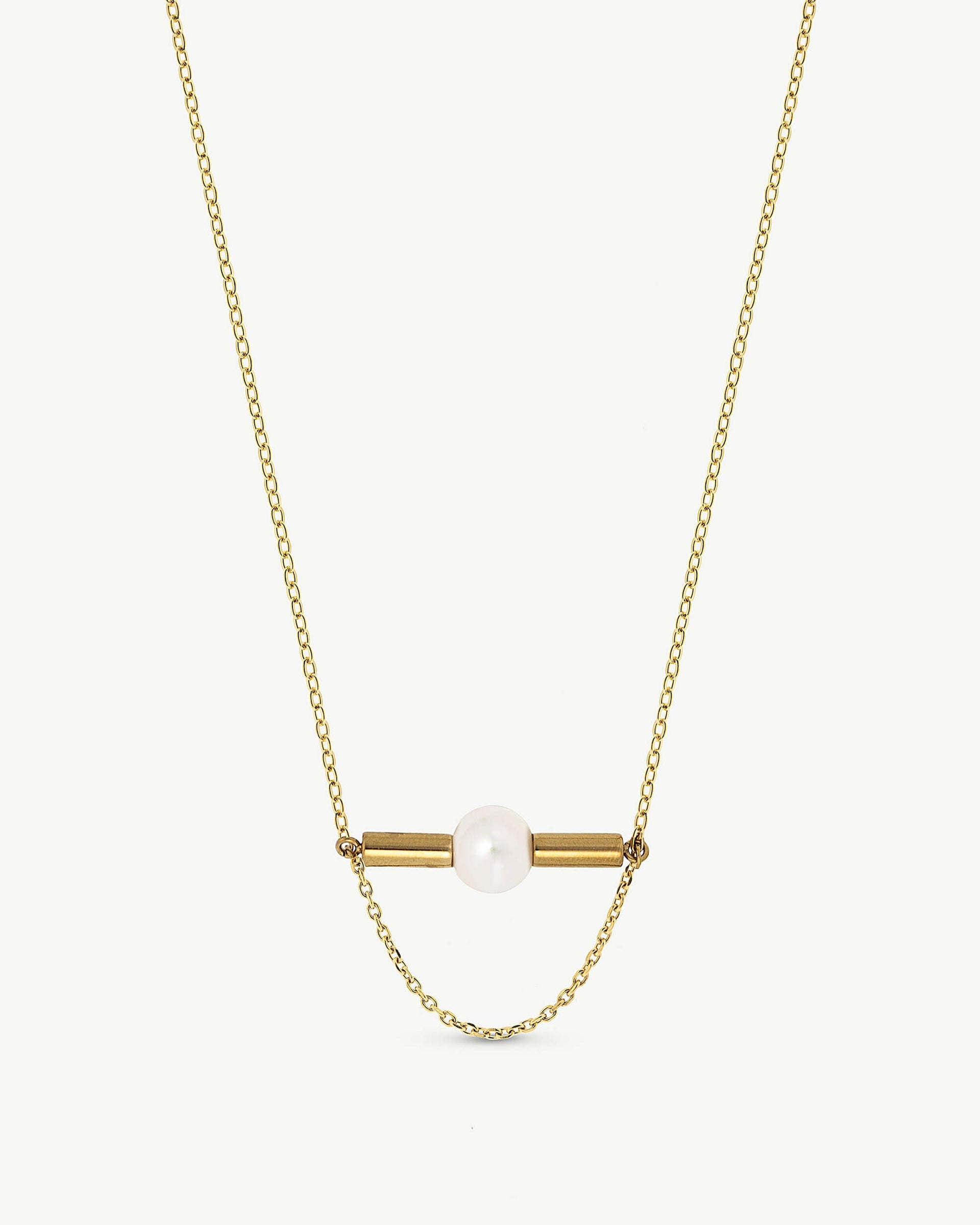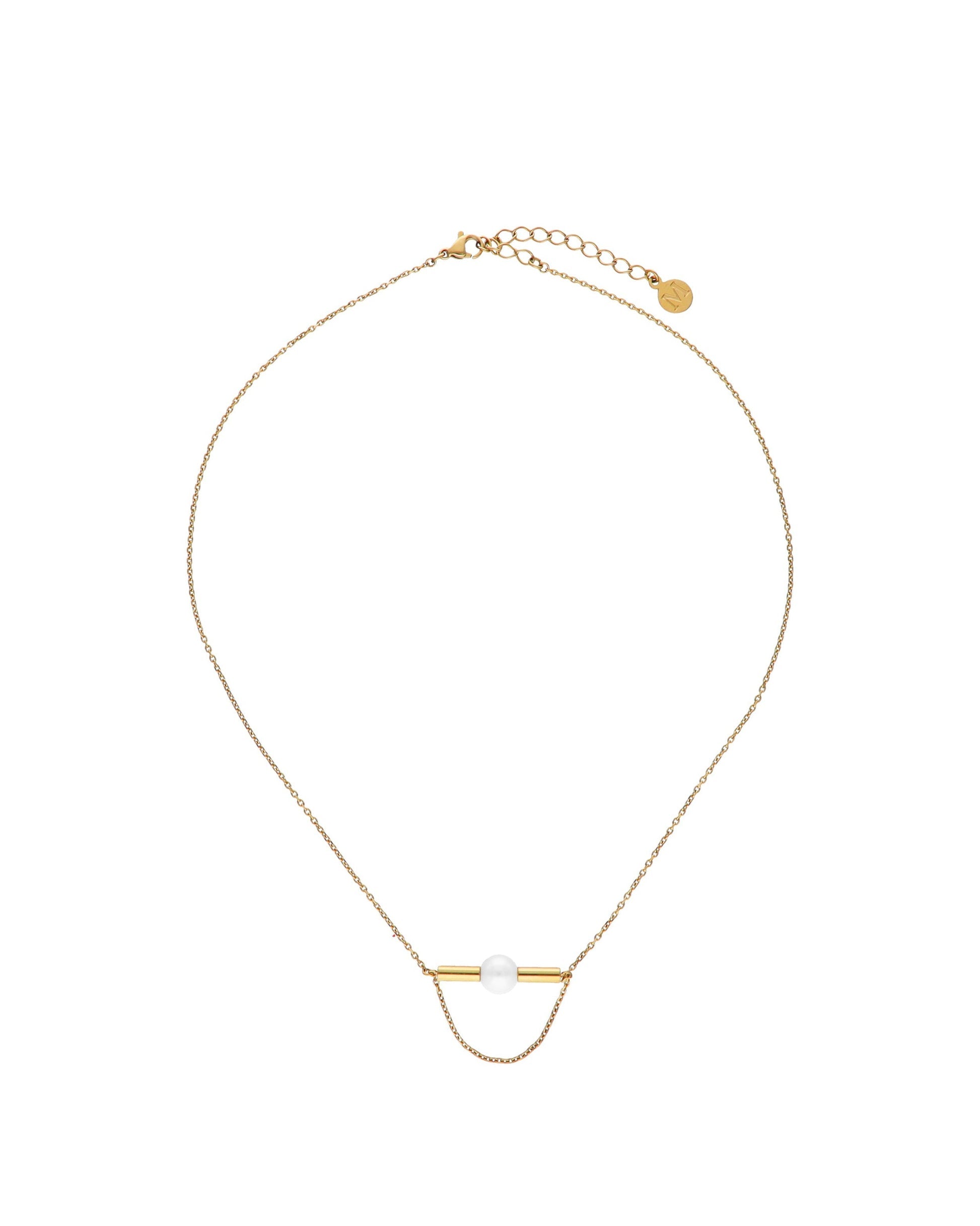Chained necklace in gold steel. 8mm white round pearl. Length 42 cm. Pure less is more style.Chained necklace in gold steel. 8mm white round pearl. Length 42 cm. Pure less is more style.Chained necklace in gold steel. 8mm white round pearl. Length 42 cm. Pure less is more style.