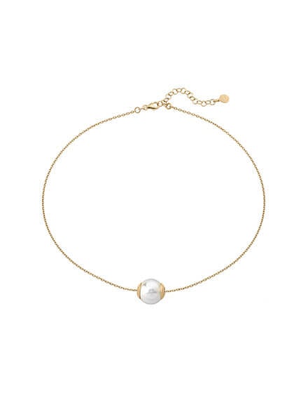 3343cm choker in golden silver, 12mm white round pearl. Its design provides fresh and versatile air, allowing you to express your personal style for any occasion.