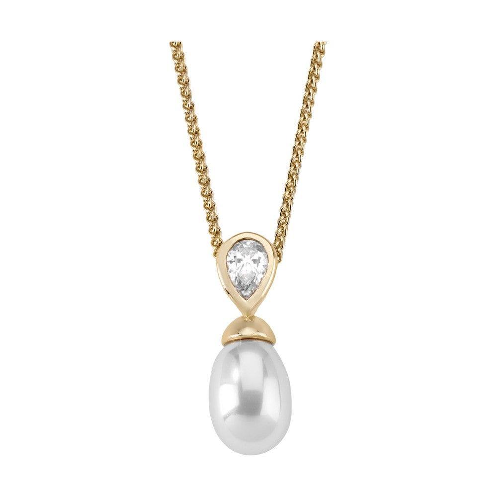 Pendant with 48cm chain in golden silver, 10x12mm white pear pearl and zircon. Jewelry for your daily life.Pendant with 48cm chain in golden silver, 10x12mm white pear pearl and zircon. Jewelry for your daily life.Pendant with 48cm chain in golden silver, 10x12mm white pear pearl and zircon. Jewelry for your daily life.