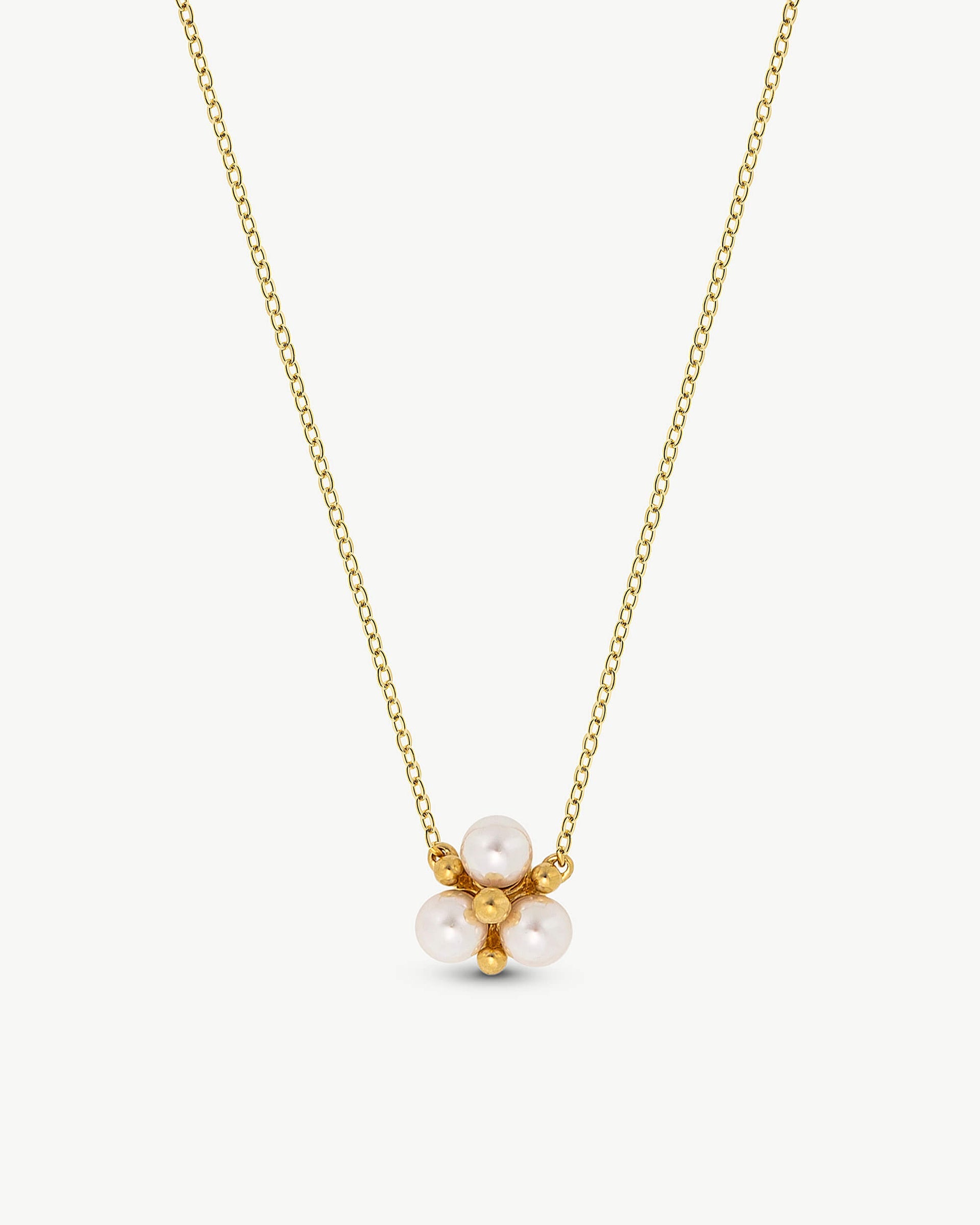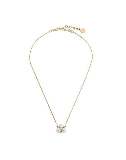 3742cm choker in golden silver, 6mm white round pearls. It is a collection made up of 5 pieces - two necklaces and three earrings.