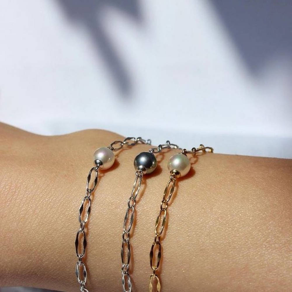 Wide chain bracelet, adjustable length of 1518cm. Made in golden silver, with a 6mm round white pearl.Combine the collection's bracelets in all pearl colorsWide chain bracelet, adjustable length of 1518cm. Made in golden silver, with a 6mm round white pearl. Combine the collection's bracelets in all pearl colorsWide chain bracelet, adjustable length of 1518cm. Made in golden silver, with a 6mm round white pearl. Combine the collection's bracelets in all pearl colors