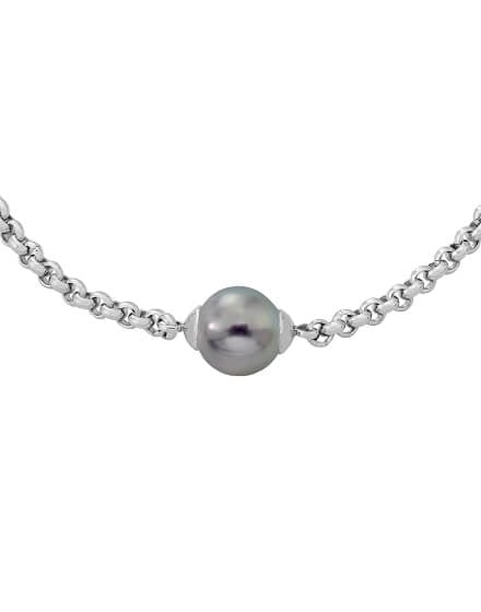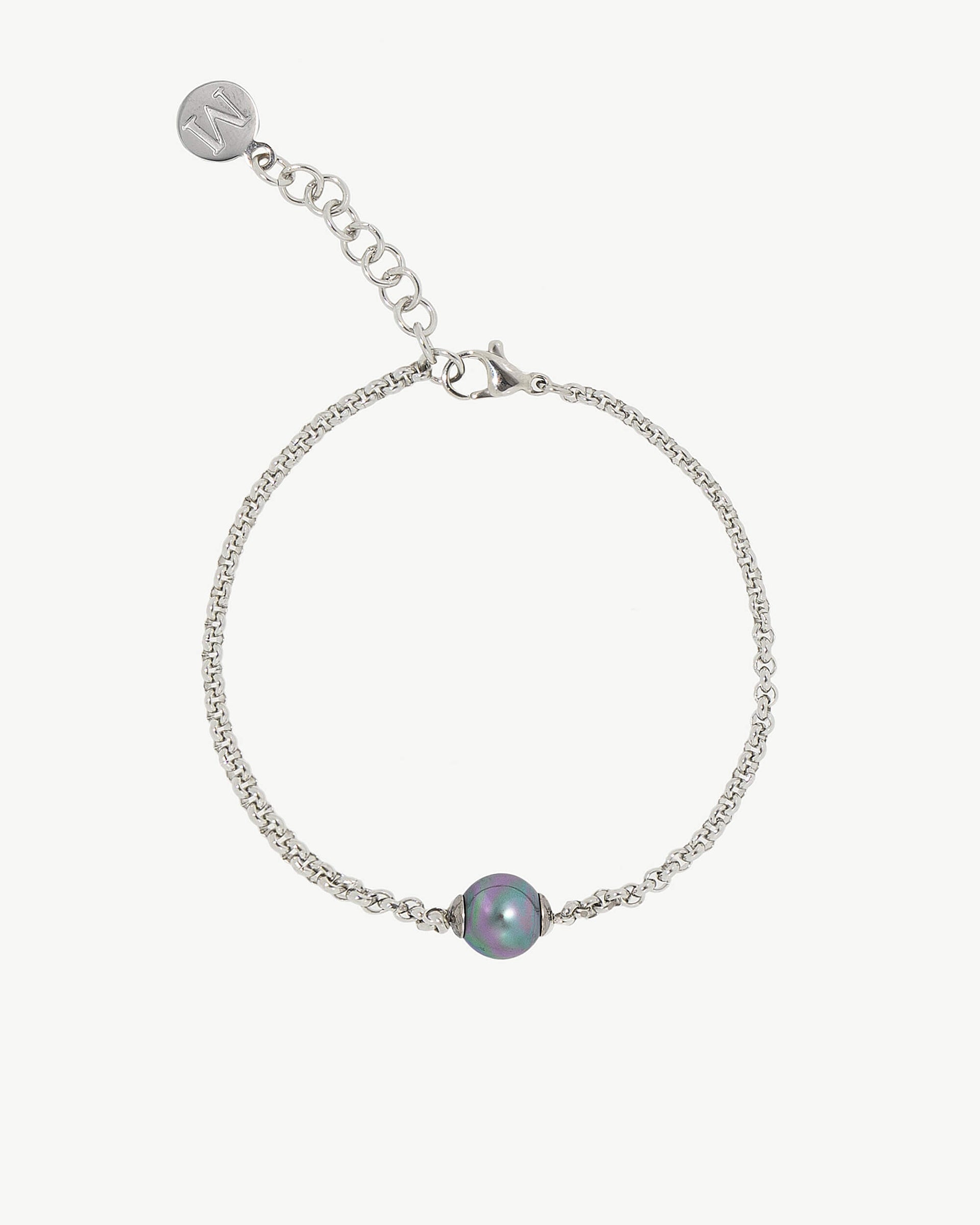 Rhodium-plated steel bracelet, 8mm gray round pearl. Its design provides fresh and versatile air, allowing you to express your personal style for any occasion.