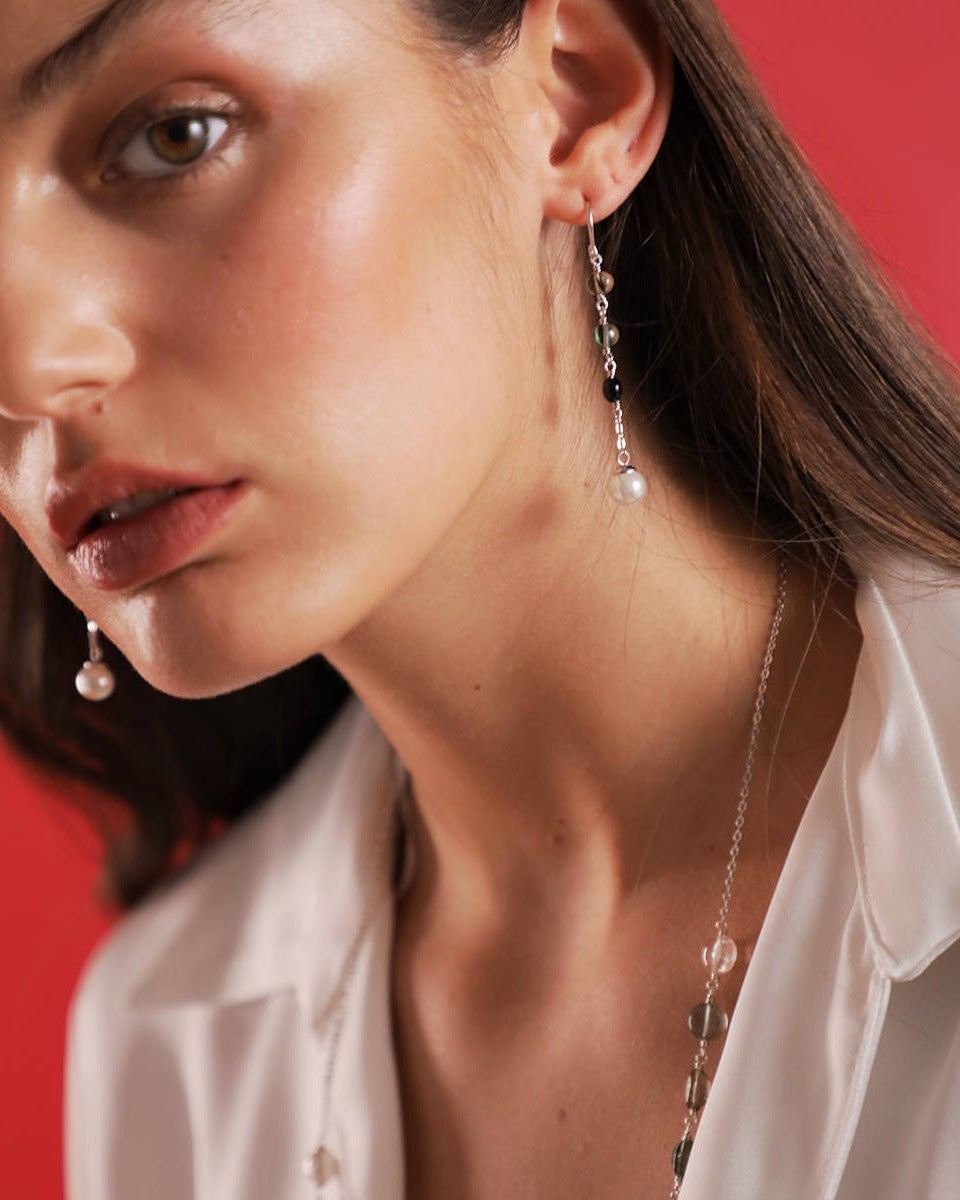 6.3 cm long earrings with rhodium-plated silver hook closure, 8 mm white round pearls and black Murano crystals. The collection shares its name with one of the Mallorcan towns with the most craftsmanship on the island.6.3 cm long earrings with rhodium-plated silver hook closure, 8 mm white round pearls and black Murano crystals. The collection shares its name with one of the Mallorcan towns with the most craftsmanship on the island.6.3 cm long earrings with rhodium-plated silver hook closure, 8 mm white round pearls and black Murano crystals. The collection shares its name with one of the Mallorcan towns with the most craftsmanship on the island.