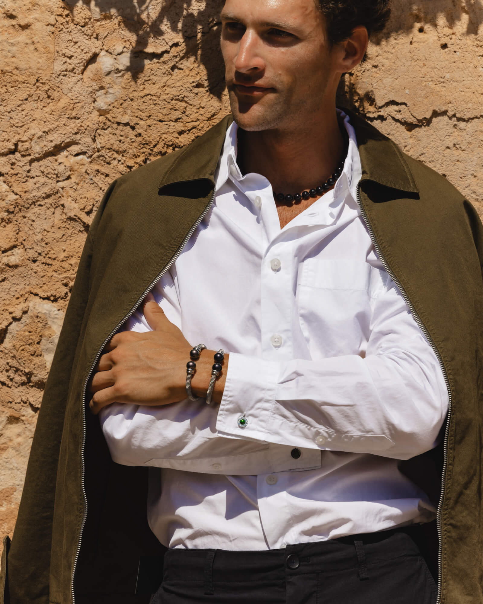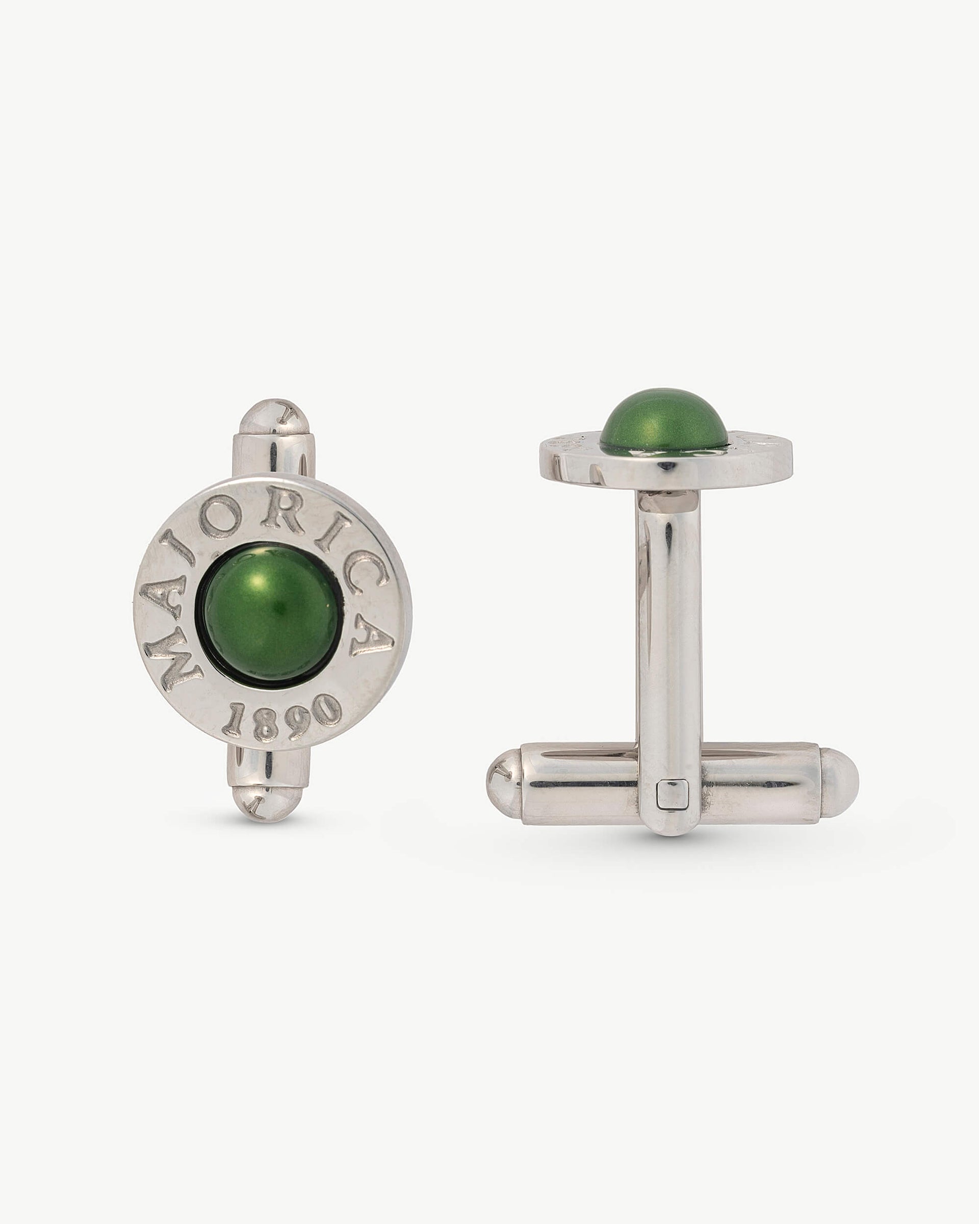 Cufflink with Majorica logo in steel and half a green pearl. Majorica's first collection of minimalist cufflinksMinimalist and timeless, the first exclusive collection of cufflinks with Majorica pearls is aimed at men on all the special occasions in which they require wearing them.Cufflink with Majorica logo in steel and half a green pearl. Majorica's first collection of minimalist cufflinks Minimalist and timeless, the first exclusive collection of cufflinks with Majorica pearls is aimed at men on all the special occasions in which they require wearing them.Cufflink with Majorica logo in steel and half a green pearl. Majorica's first collection of minimalist cufflinks Minimalist and timeless, the first exclusive collection of cufflinks with Majorica pearls is aimed at men on all the special occasions in which they require wearing them.