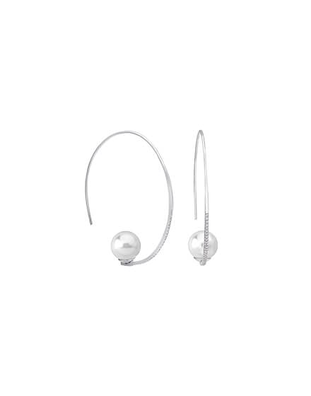 Hoop earrings with 4.15cm hook in rhodium-plated steel, 10mm round white pearl and zircons.Hoop earrings with 4.15cm hook in rhodium-plated steel, 10mm round white pearl and zircons.Hoop earrings with 4.15cm hook in rhodium-plated steel, 10mm round white pearl and zircons.