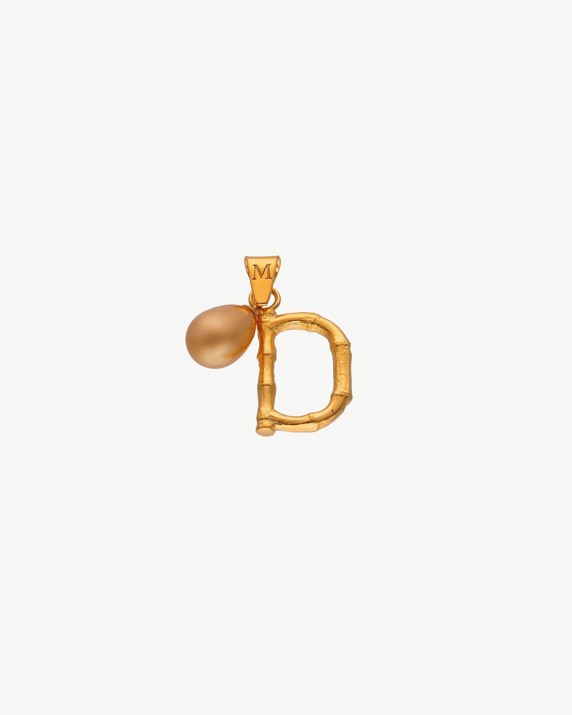 Initial Charm Letter D Pearl Champagne Bamboo Iniciales Bambú
