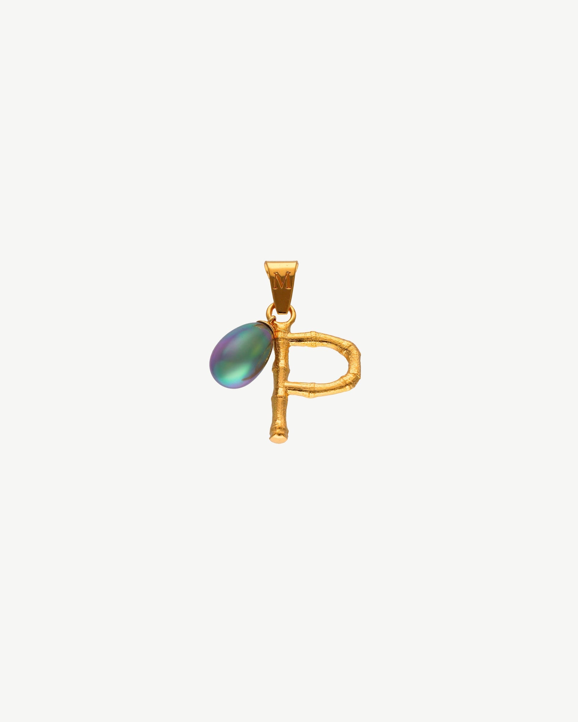 Initial P charm in golden silver with Gray pearl. The Bamboo capsule represents the exotic jungle, the tall trees with intertwined branches that form a spectacular canopy.Initial P charm in golden silver with Gray pearl. The Bamboo capsule represents the exotic jungle, the tall trees with intertwined branches that form a spectacular canopy.Initial P charm in golden silver with Gray pearl. The Bamboo capsule represents the exotic jungle, the tall trees with intertwined branches that form a spectacular canopy.