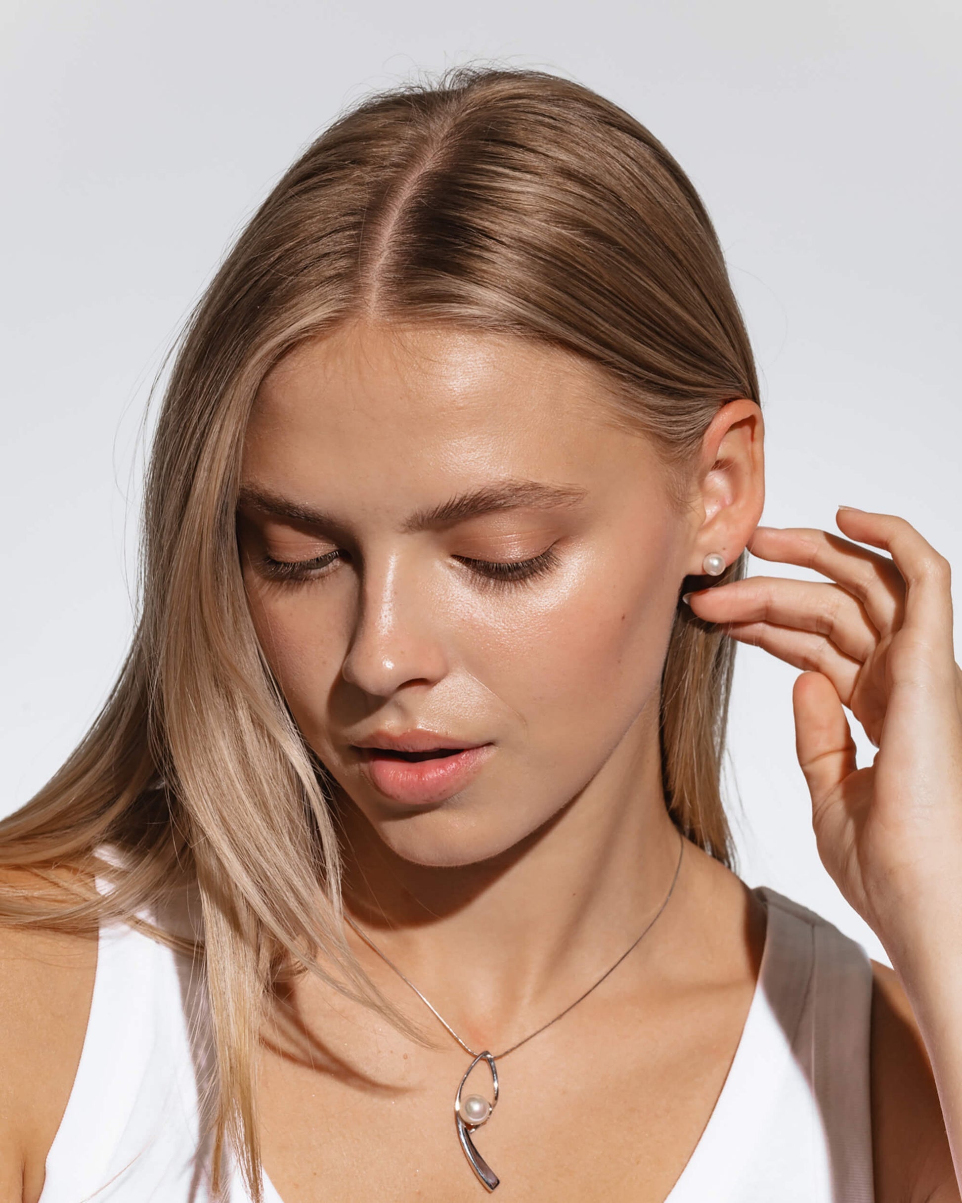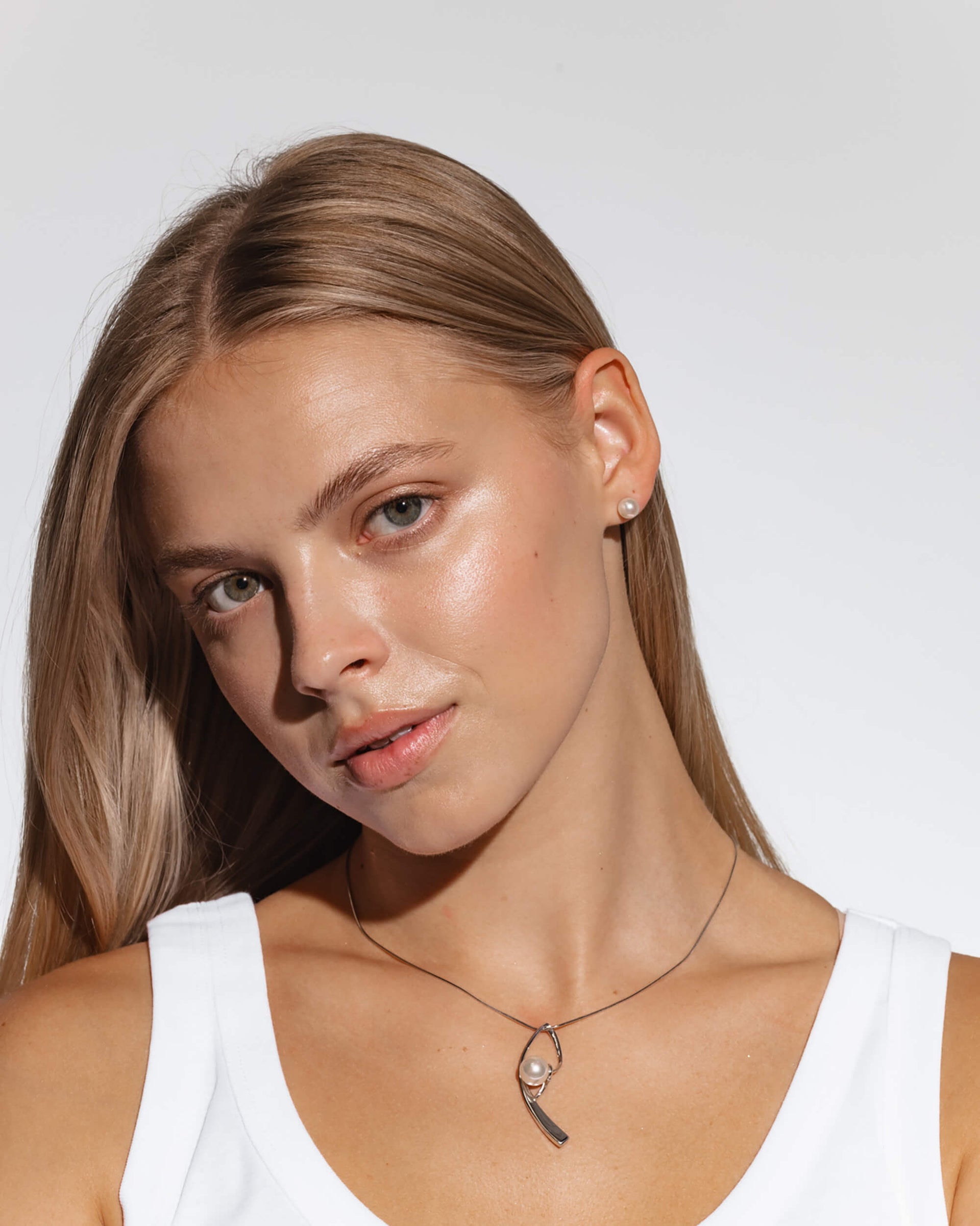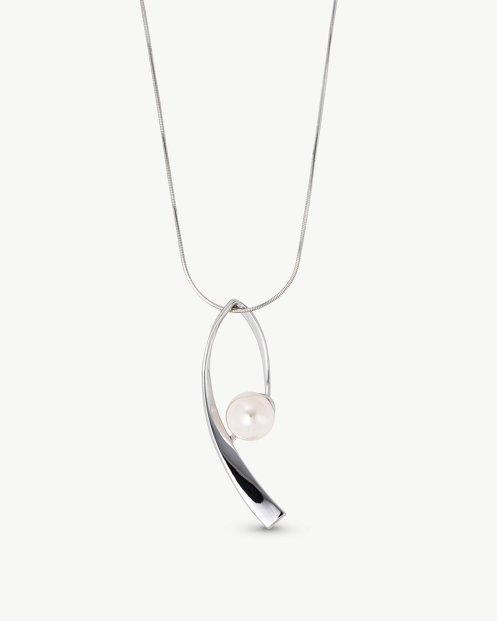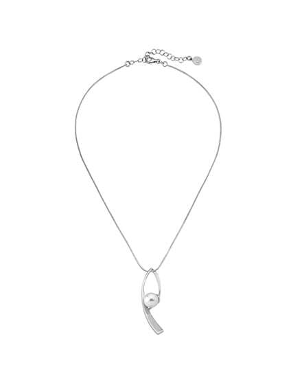 Pendant with 3742cm chain in rhodium-plated silver, 10mm white round pearl..