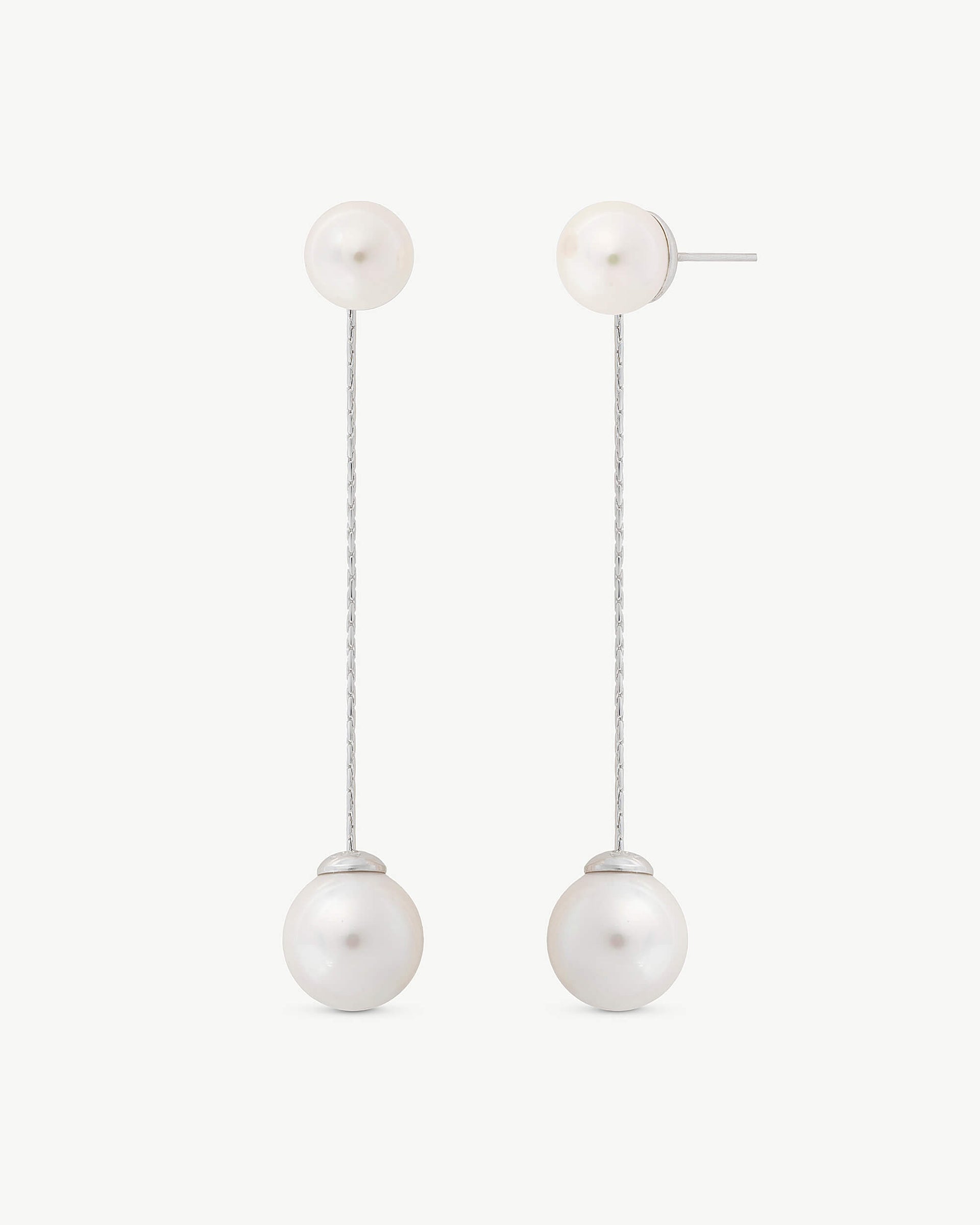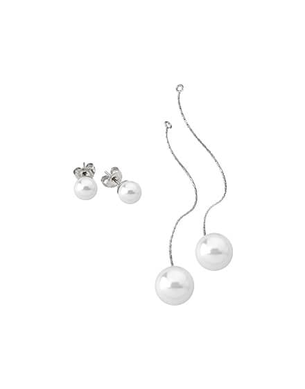 3 in 1 8cm long spike earrings in rhodium-plated silver, 810mm white round pearls. Necklaces and long earrings make up the collection.3 in 1 8cm long spike earrings in rhodium-plated silver, 810mm white round pearls. Necklaces and long earrings make up the collection.3 in 1 8cm long spike earrings in rhodium-plated silver, 810mm white round pearls. Necklaces and long earrings make up the collection.