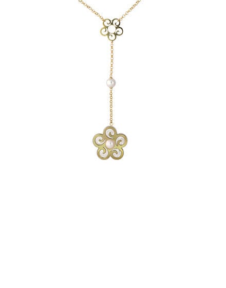 70 cm long necklace in golden silver, with round pearls linked on the chain, and an 8 mm white half ball pearl. in the flower.Inspired by the beauty and indisputable light of flowers, the collection is perfect for giving an elegant and stylish touch to your looks.70 cm long necklace in golden silver, with round pearls linked on the chain, and an 8 mm white half ball pearl. in the flower. Inspired by the beauty and indisputable light of flowers, the collection is perfect for giving an elegant and stylish touch to your looks.70 cm long necklace in golden silver, with round pearls linked on the chain, and an 8 mm white half ball pearl. in the flower. Inspired by the beauty and indisputable light of flowers, the collection is perfect for giving an elegant and stylish touch to your looks.